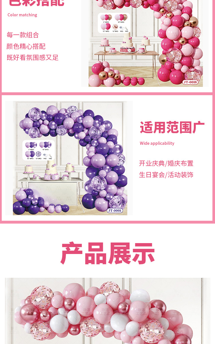 我们是义乌静洁气球套装生产工厂,我们拥有专业的套餐开发设计团队,我们致力于成为全球派对领域的创意灯塔。