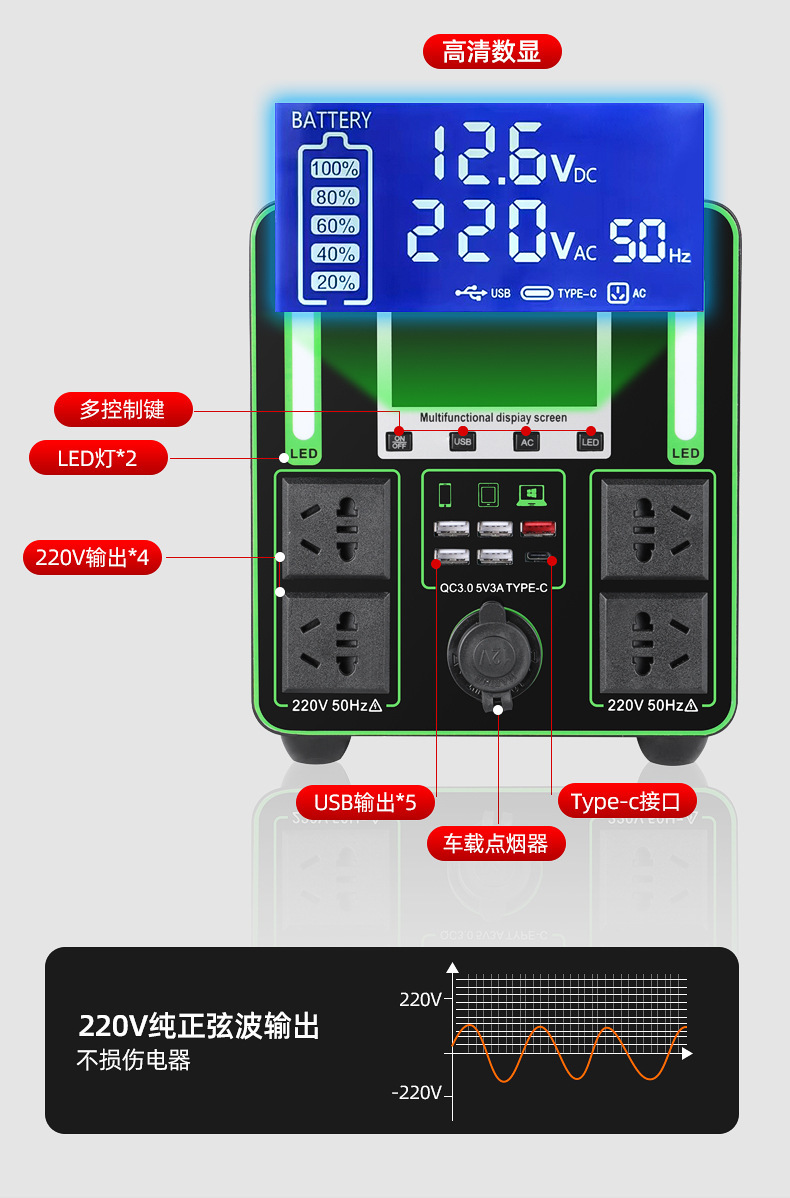 220v 야외 자율 주행 투어 자동차 캠핑 스톨 충전 에너지 저장 대용량 휴대용 모바일 배터리 전원 공급 장치