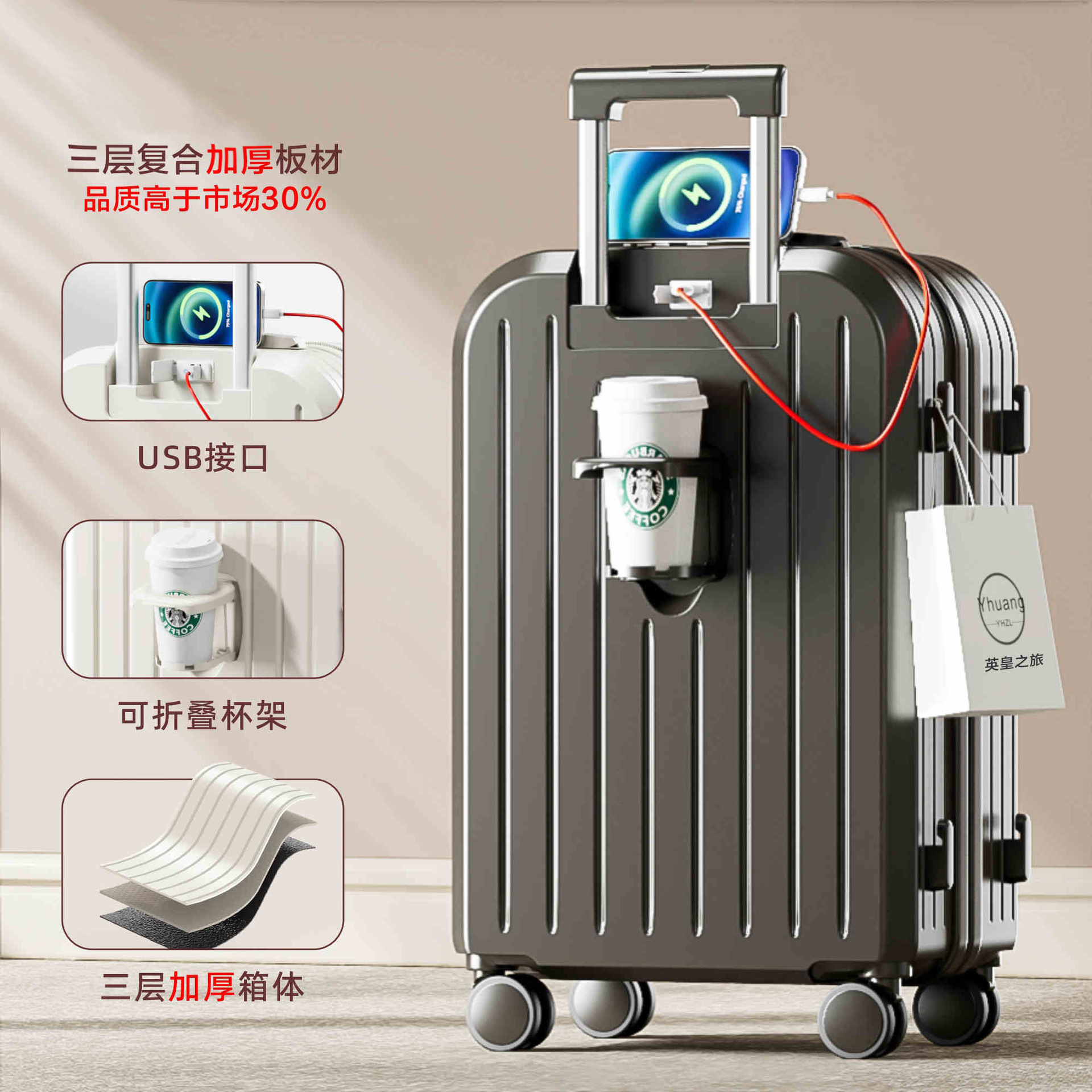 수하물 상자 여성의 USB 인터페이스 경량 겨울 여행 가방 20 인치 캐빈 박스 작은 암호 상자 유니버설 음소거 휠