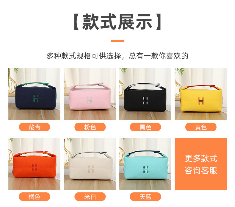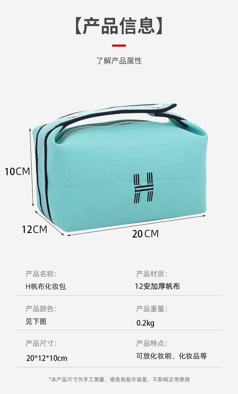 간단한 캔버스 휴대용 화장품 가방 여행 대용량 화장실 가방 H 도시락 가방 휴대용 방진 및 방수 보관 가방
