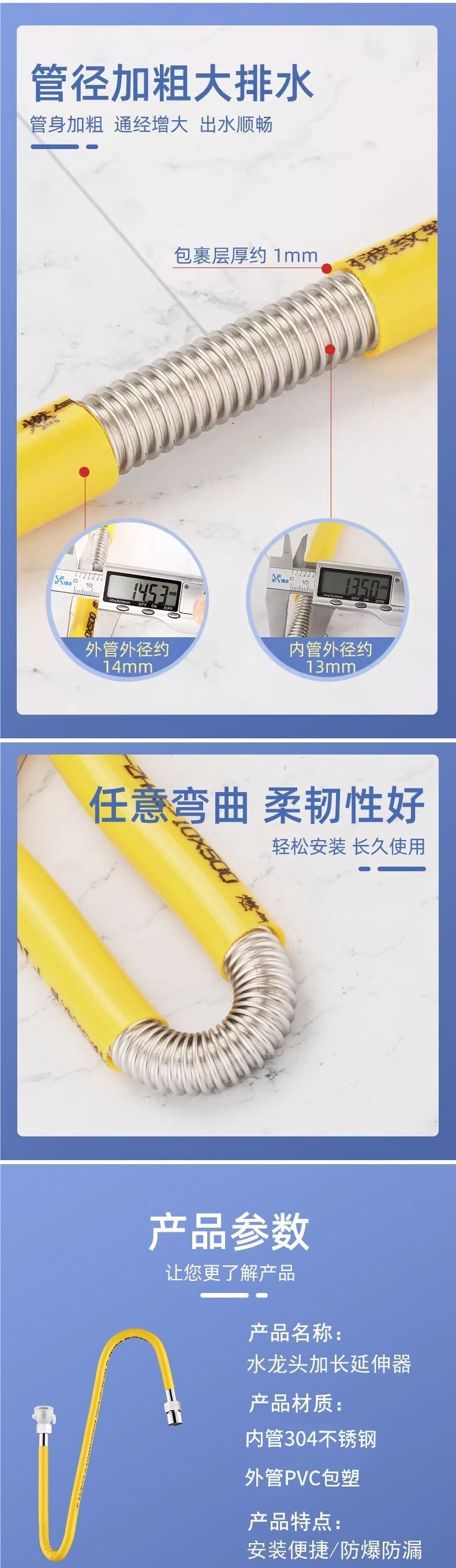 확장 된 범용 수도꼭지 익스텐더는 세탁기 폭발 방지 출구 파이프 호스 확장 튜브