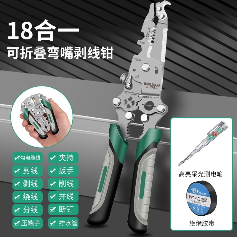 • 【18-in-1】접이식 둥근 입 와이어 스트리퍼