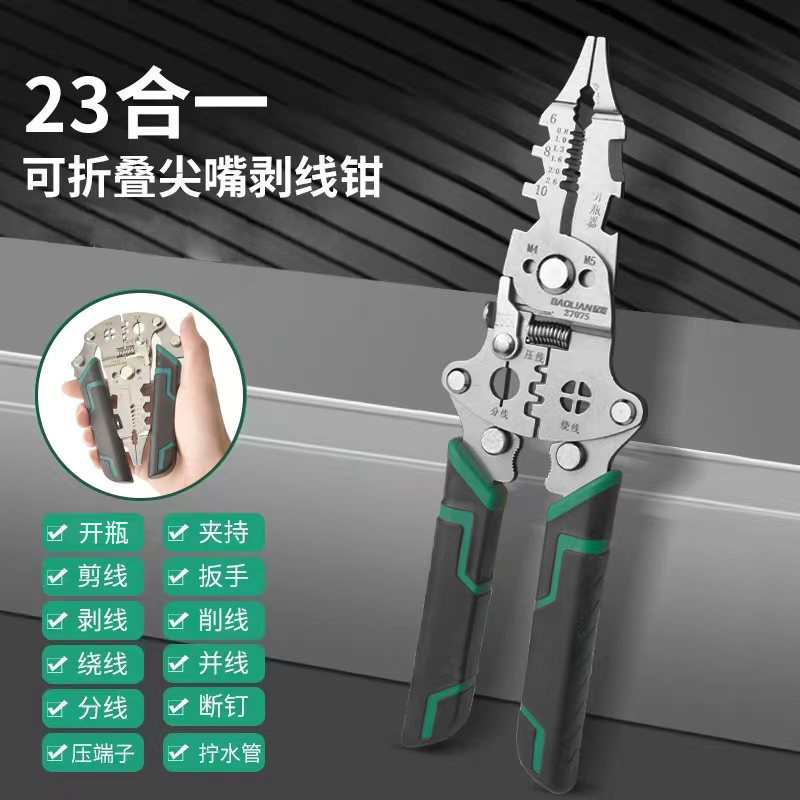 Baolian 접이식 와이어 스트리핑 펜치 새로운 산업 다기능 와이어 스트리핑 플라이어 나사 및 와이어 권선 풀리 디자인