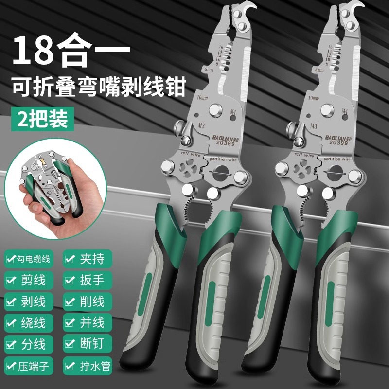 • [18-in-1] 접이식 둥근 입 와이어 스트리퍼 2개