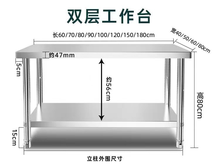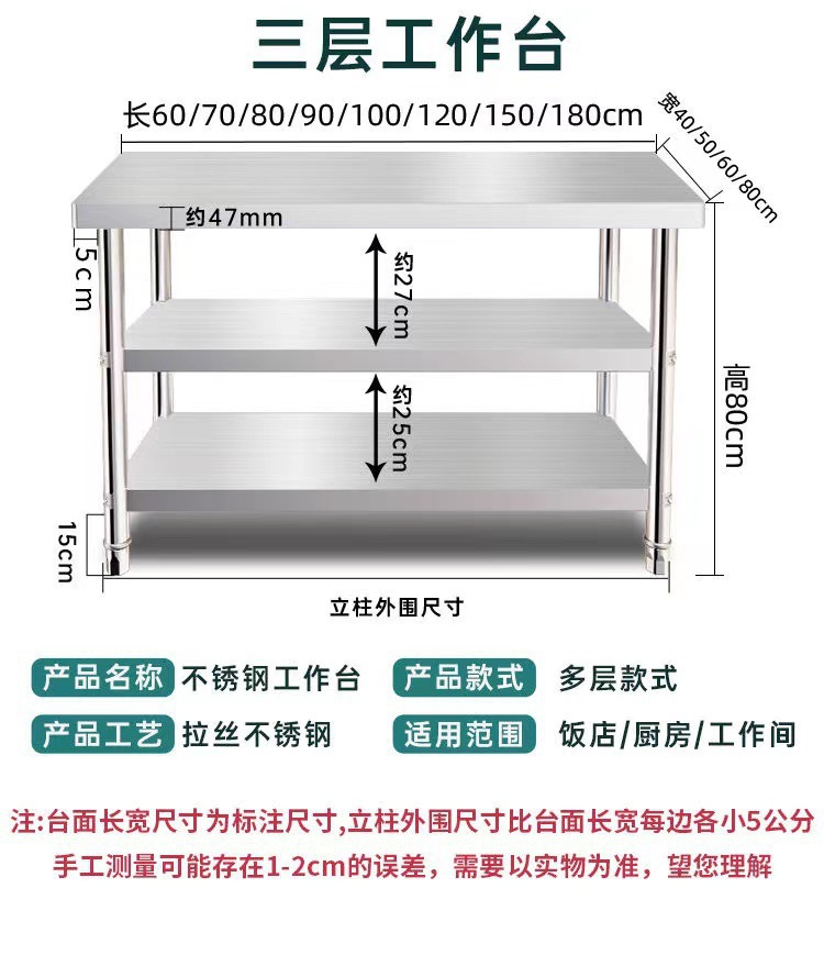 더블 레이어 스테인레스 스틸 작업대 주방 수술대 도마 3 층 두꺼운 스테인레스 스틸 테이블 포장 테이블 재생 테이블스토어 가기