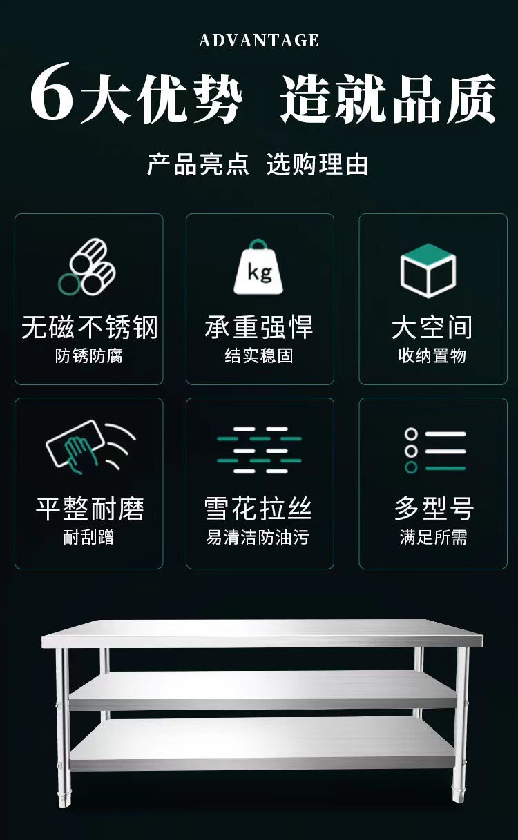 더블 레이어 스테인레스 스틸 작업대 주방 수술대 도마 3 층 두꺼운 스테인레스 스틸 테이블 포장 테이블 재생 테이블
