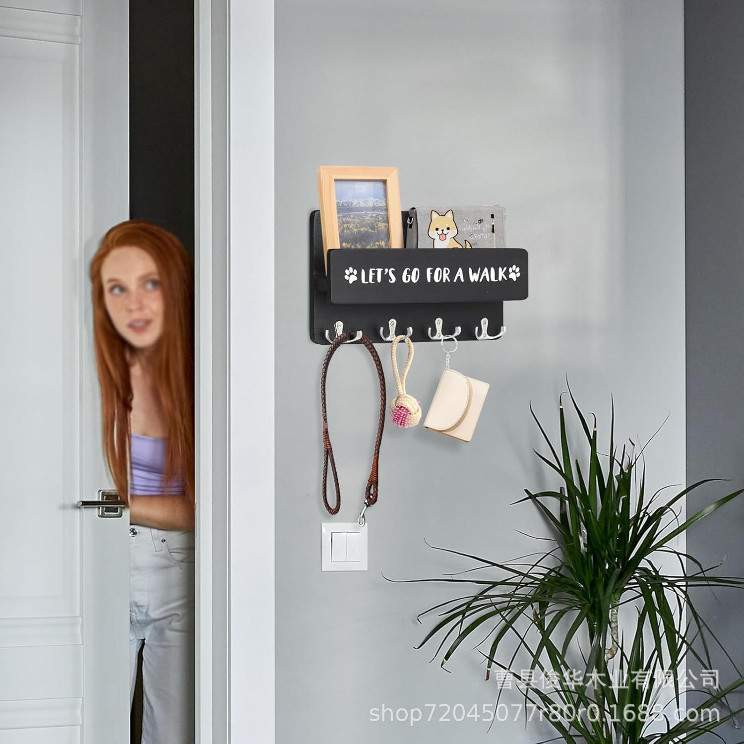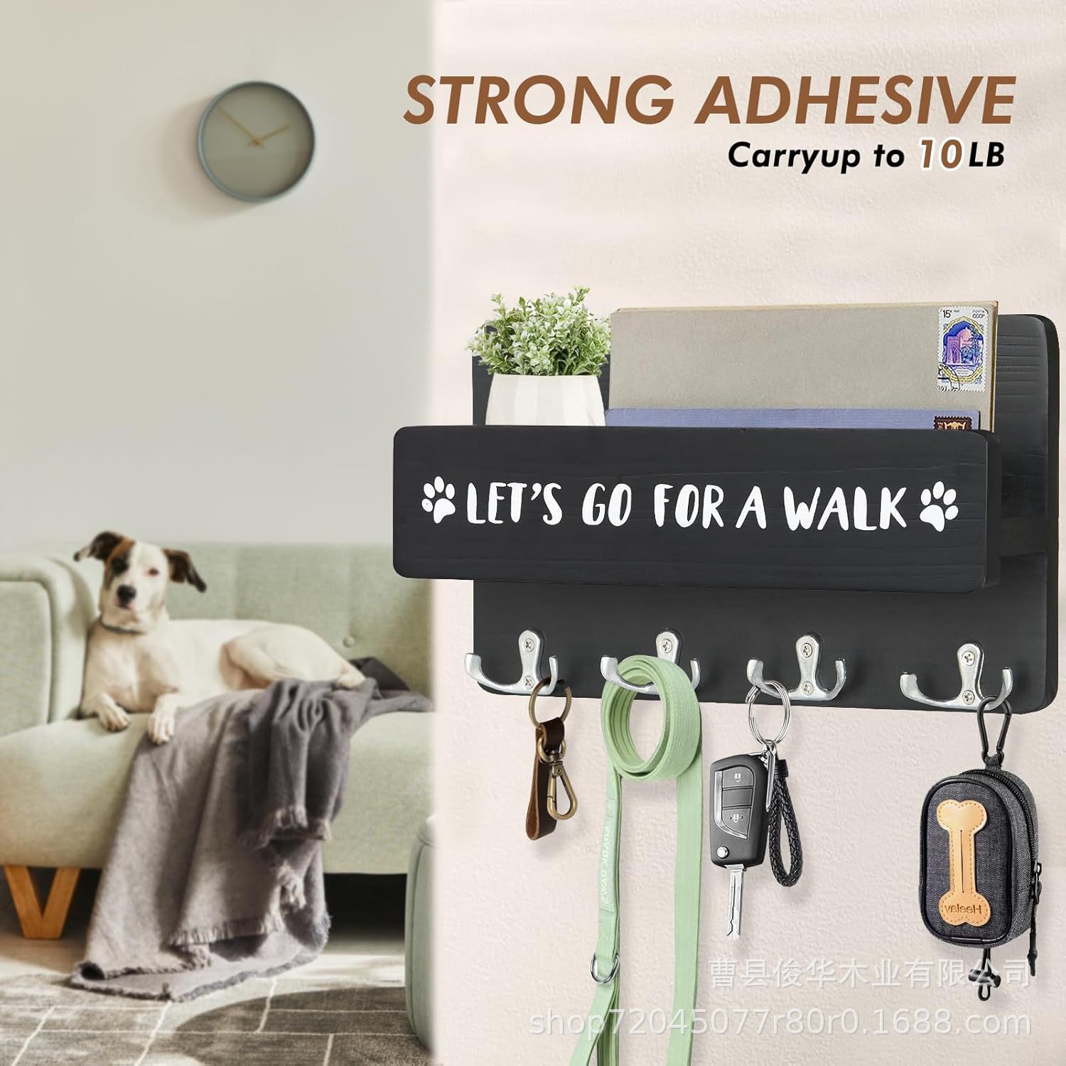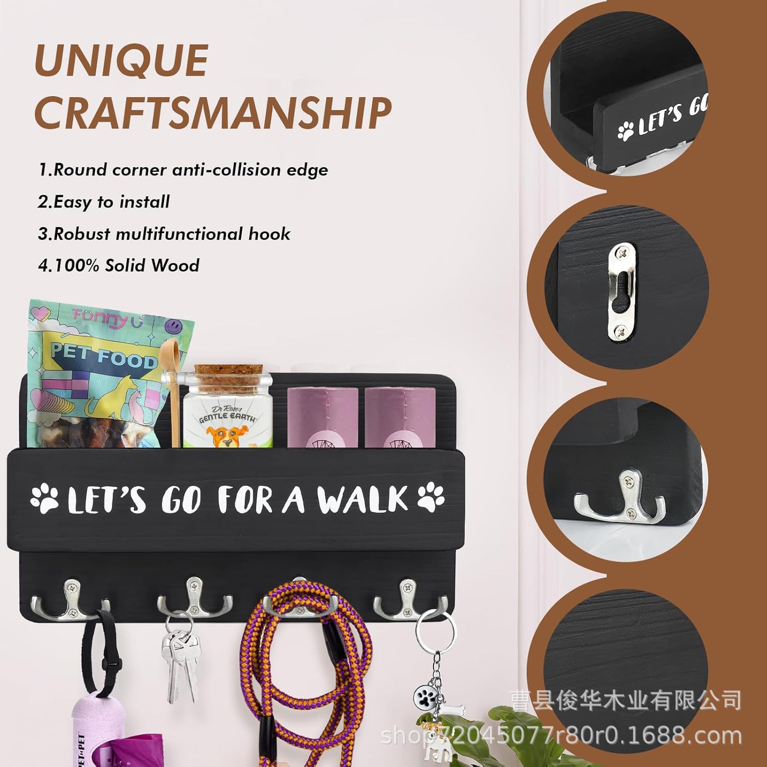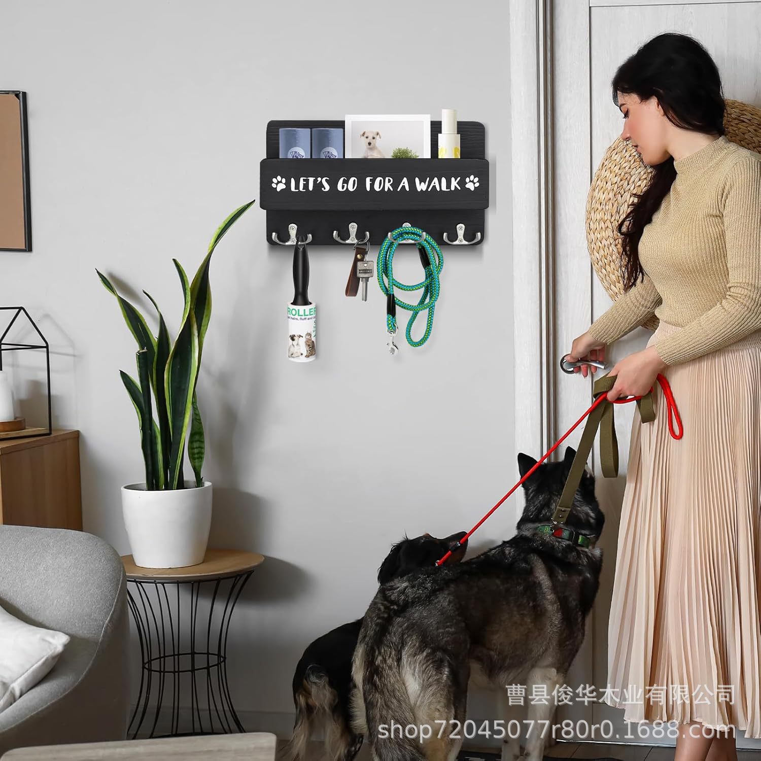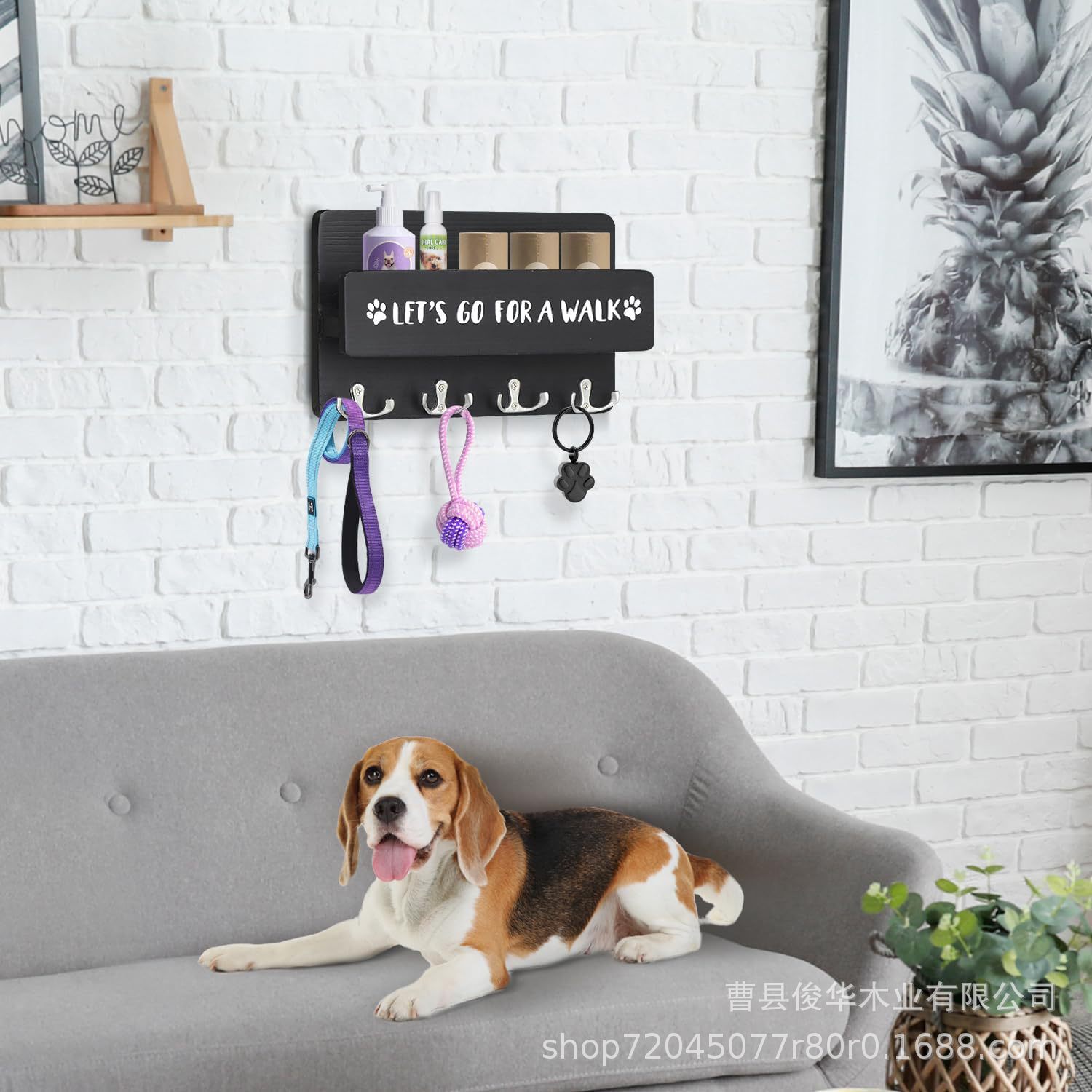 벽 나무 개 가죽 끈 홀더 애완 동물 개 목걸이 스낵 장난감 보관 랙 현관 메일 키 홀더