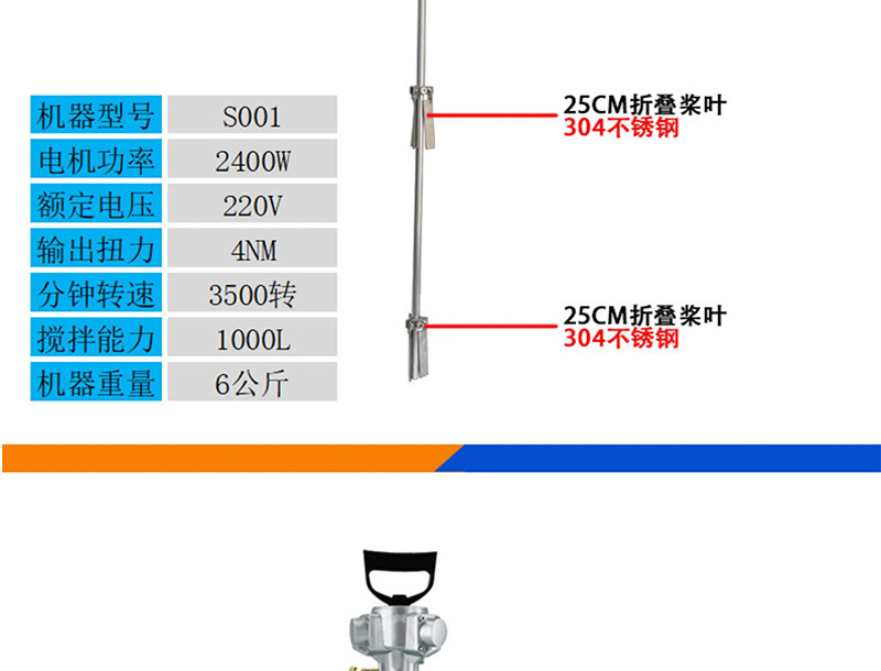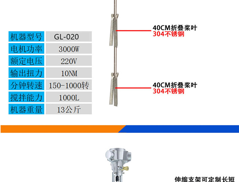 • 이중 확장 접이식 블레이드가 있는 서보 전기 믹서