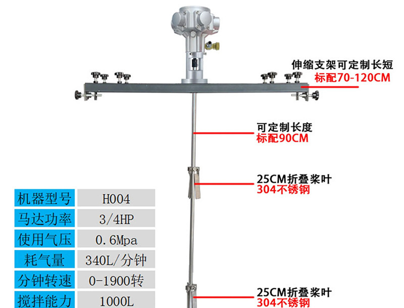 • 이중 확장 블레이드가 있는 H004 공압식 믹서