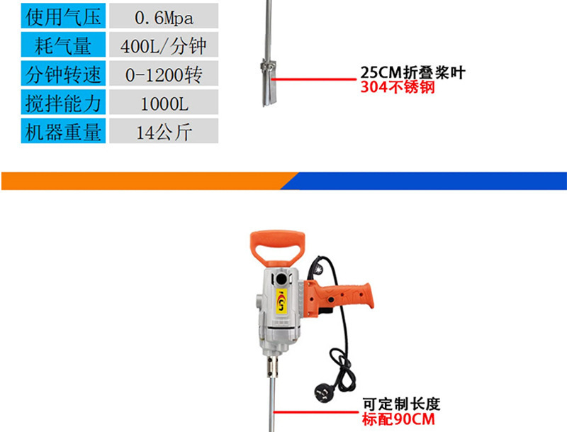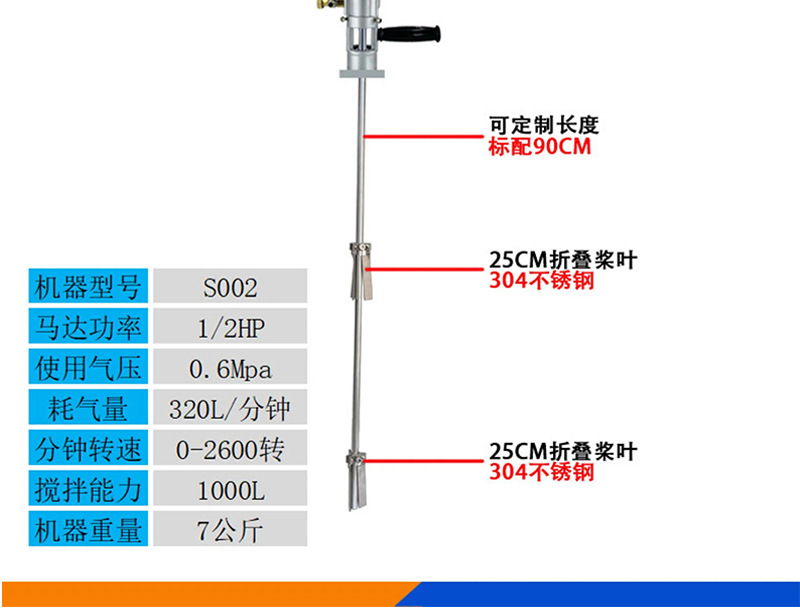 • 이중 확장 블레이드가 있는 휴대용 공압 믹서