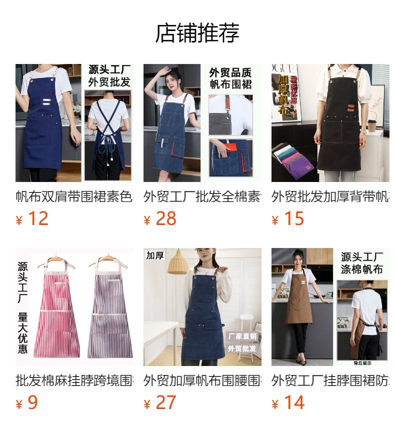 本厂是专业生产围裙20年的工厂,有着丰富的生产,定制经验,日产量8000+ 全套的生产设备,定制印字刺绣一站式服务 。 来样定制,代加工,一件代发,满足多样需求 跨境电商专属:opp包装,装箱,贴标等服务。 让您售后无忧,快速响应,贴心服务一路相伴。