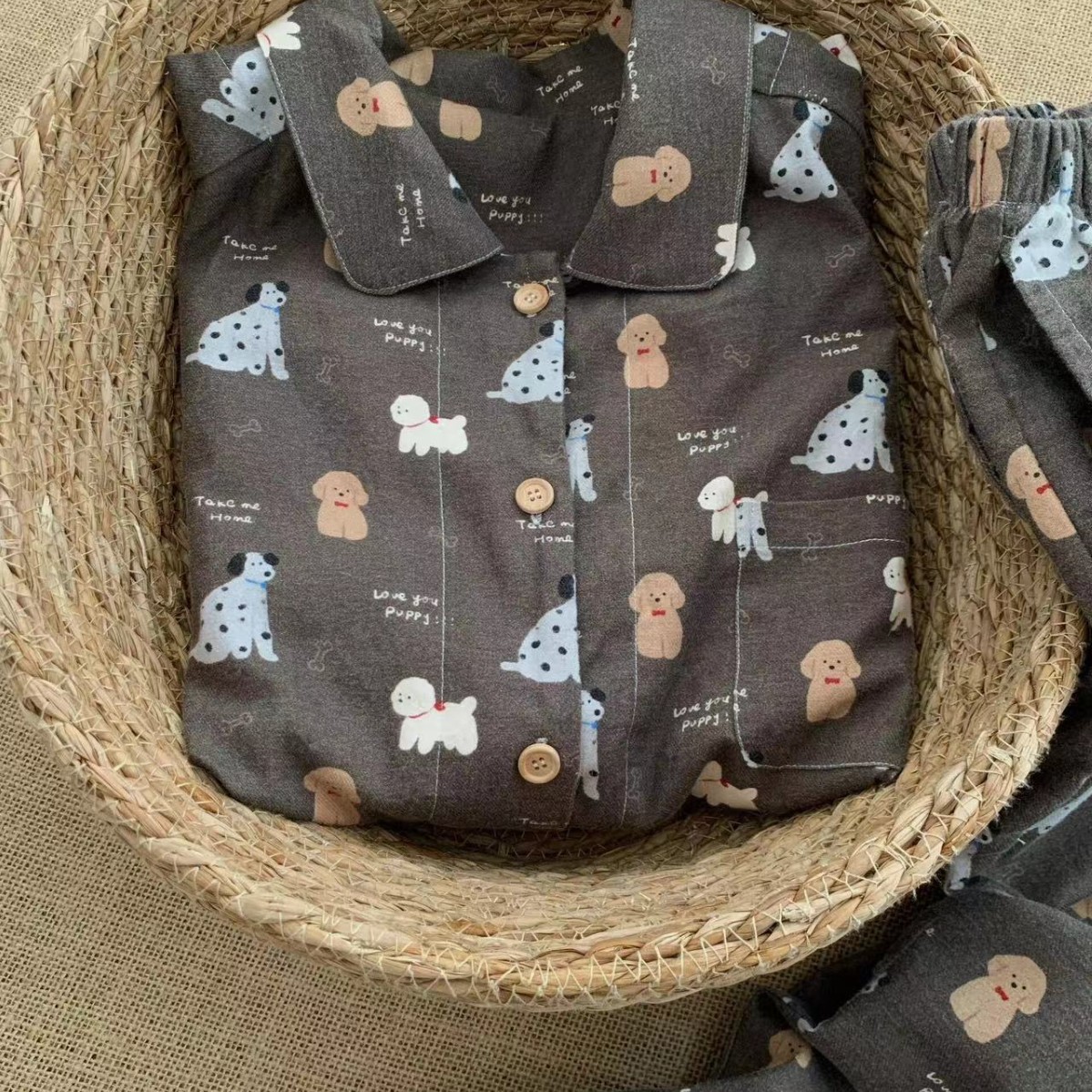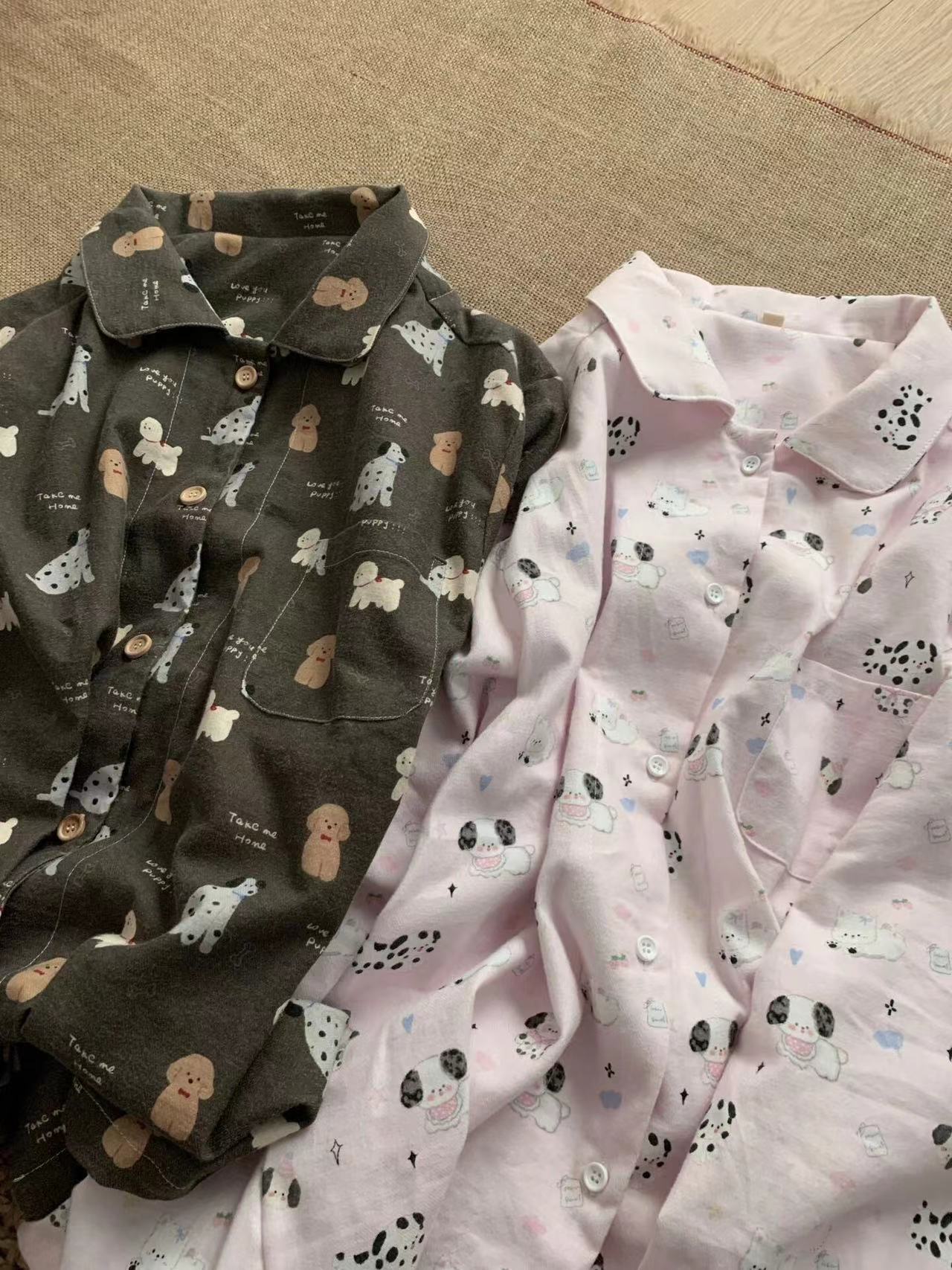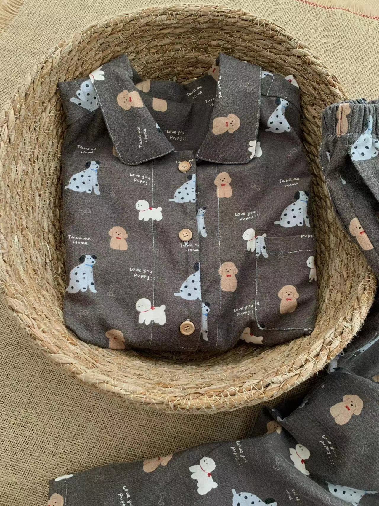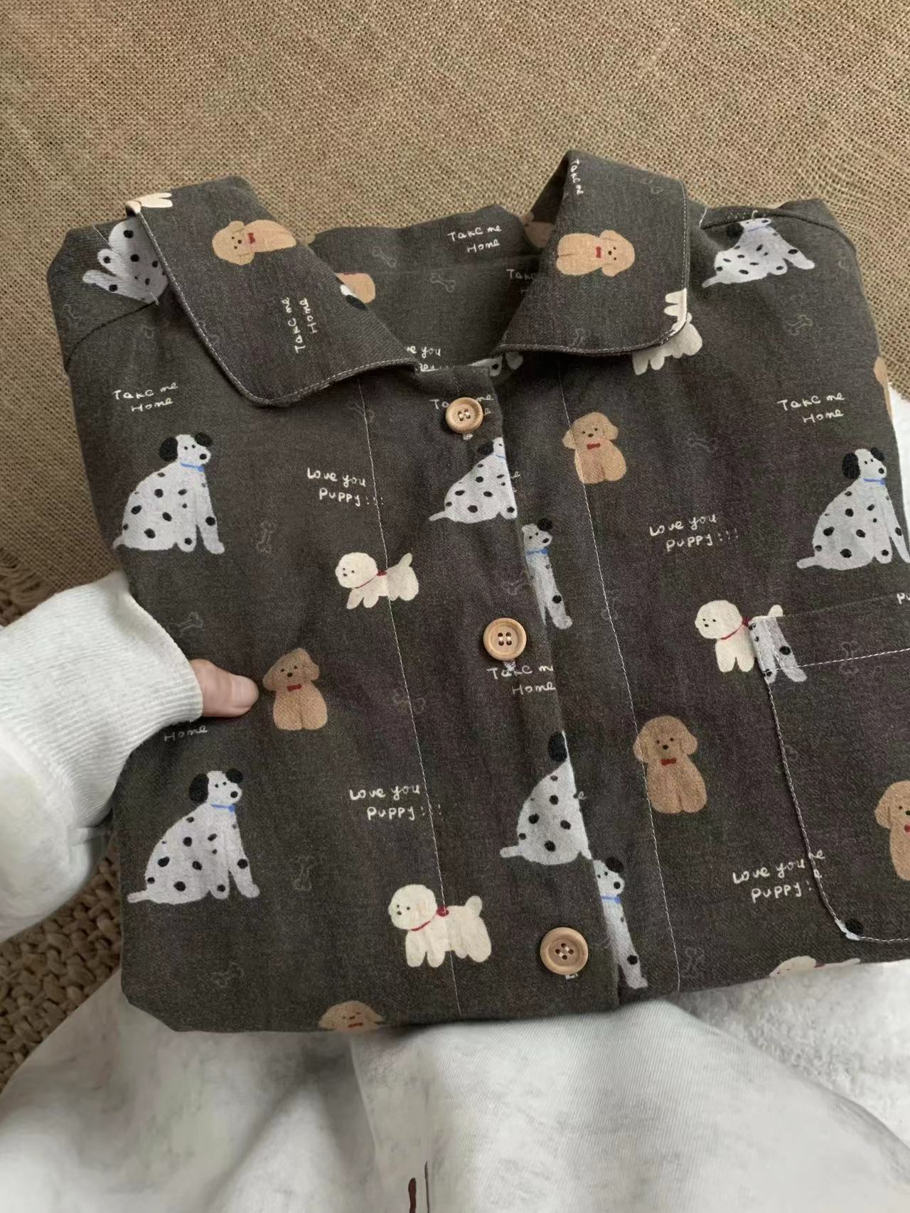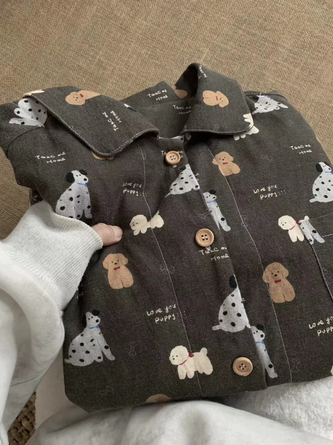 탄소 재 강아지 ~! 면 샌딩 작은 옷깃 긴 소매 바지 파자마 귀여운 소녀의 집 옷스토어 가기
