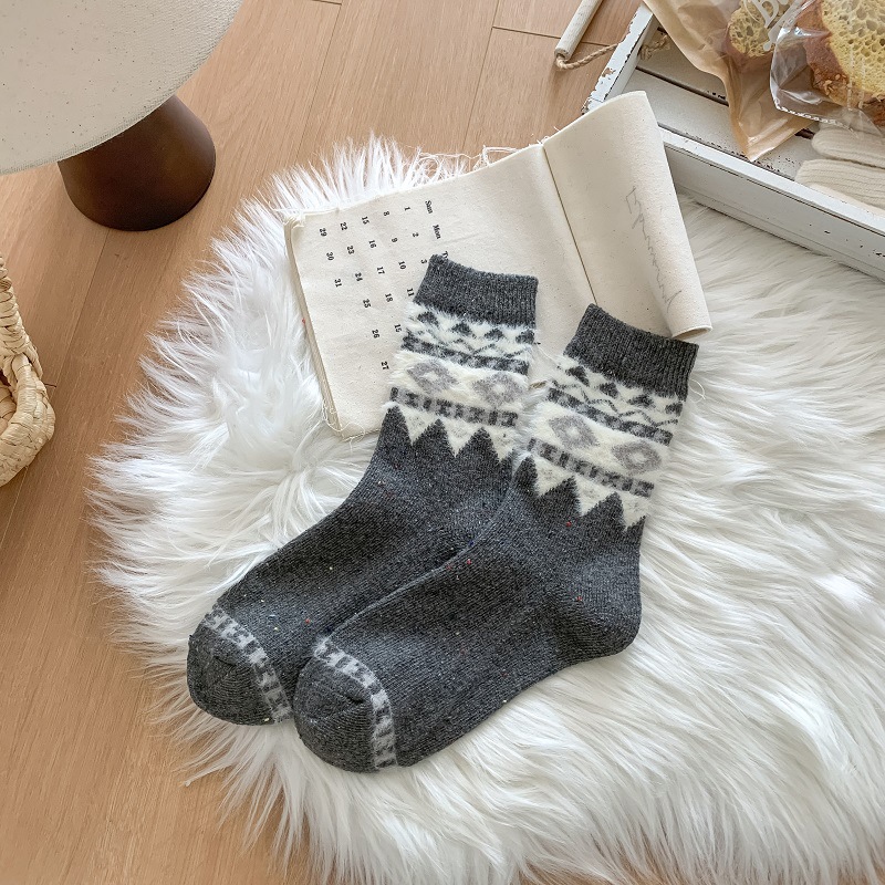 두꺼운 가을과 겨울 새로운 항해 섬 스타일 양모 양말 일본식 도트 원사 눈사람 두꺼운 따뜻한 힙 양말스토어 가기