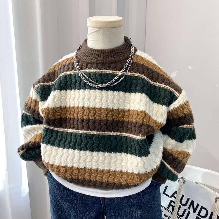 소년 스웨터 2023 가을과 겨울 새로운 스웨터 어린이 두꺼운 따뜻한 옷 한국식 스트라이프베이스 셔츠