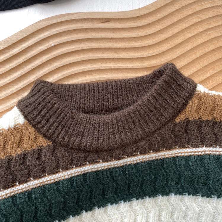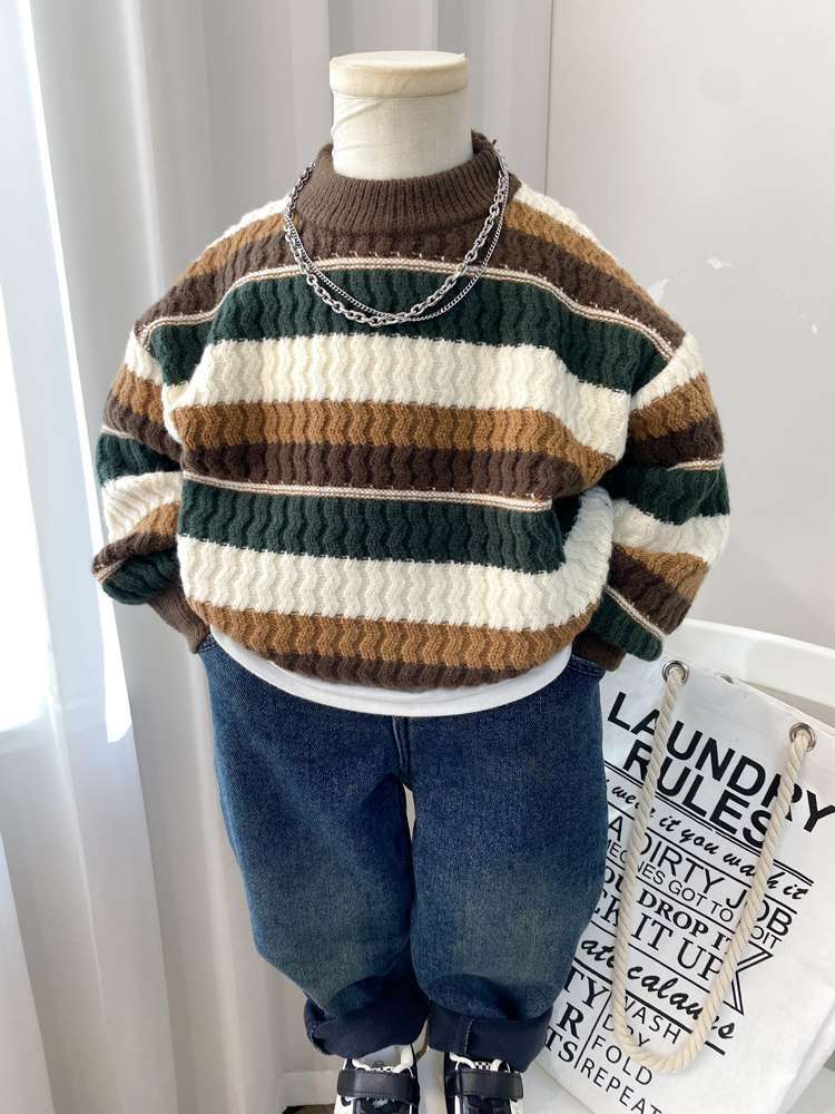 소년 스웨터 2023 가을과 겨울 새로운 스웨터 어린이 두꺼운 따뜻한 옷 한국식 스트라이프베이스 셔츠스토어 가기