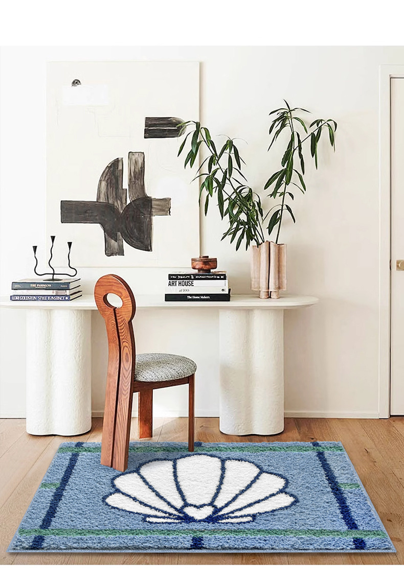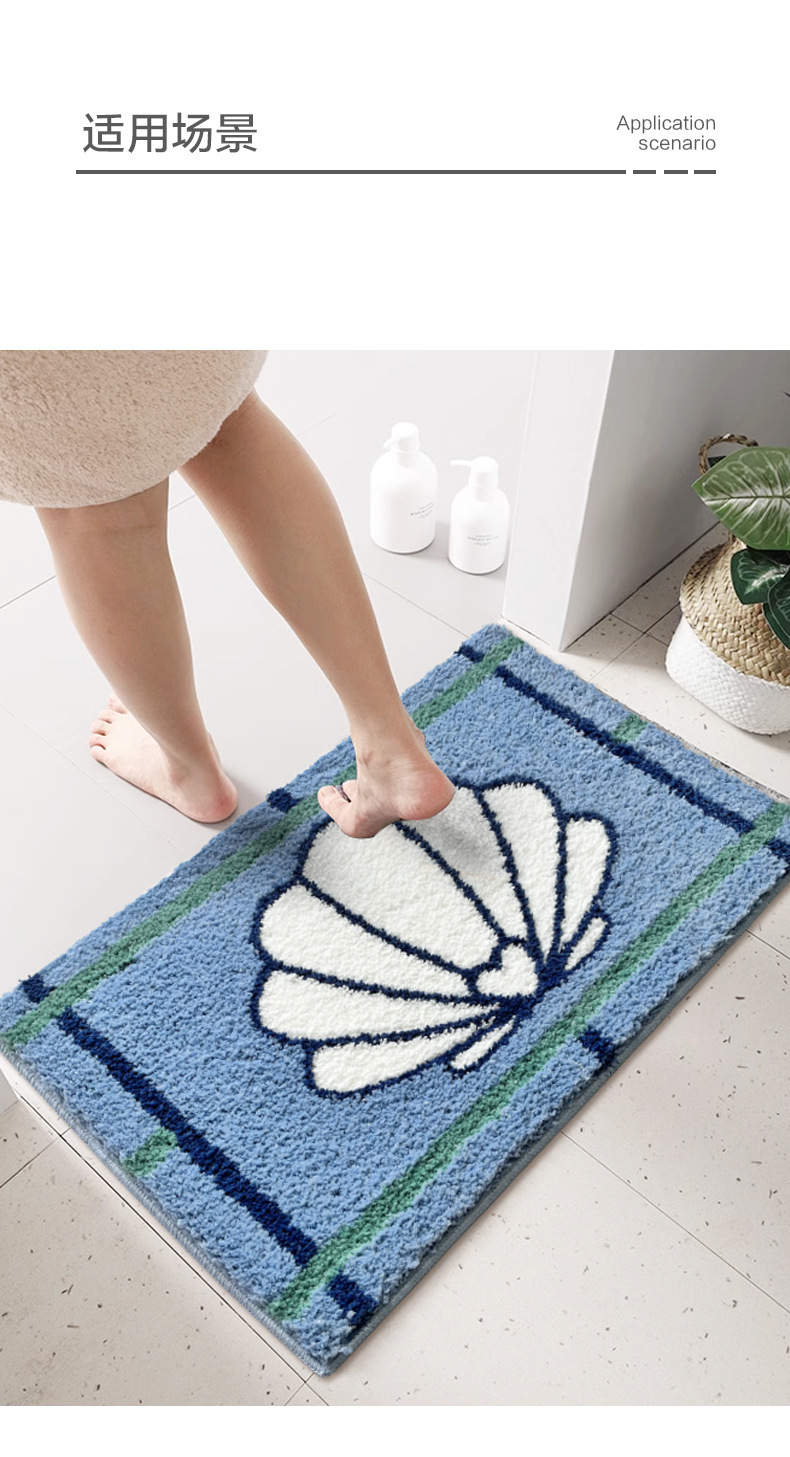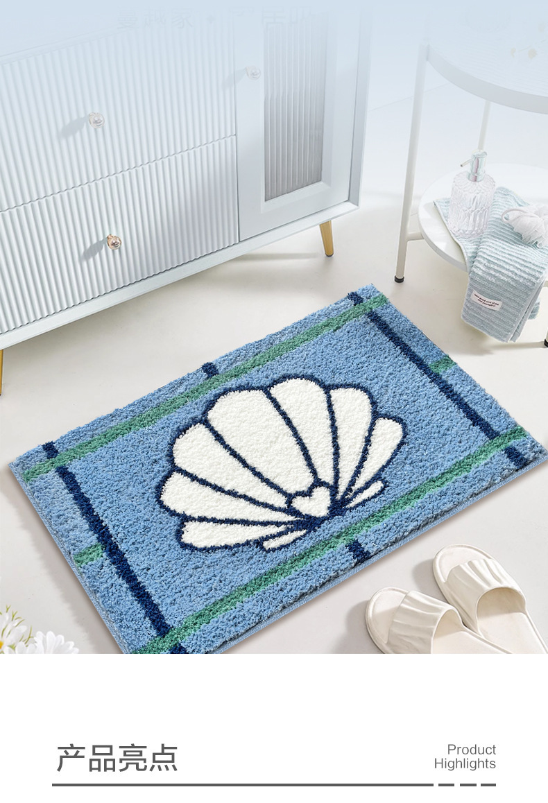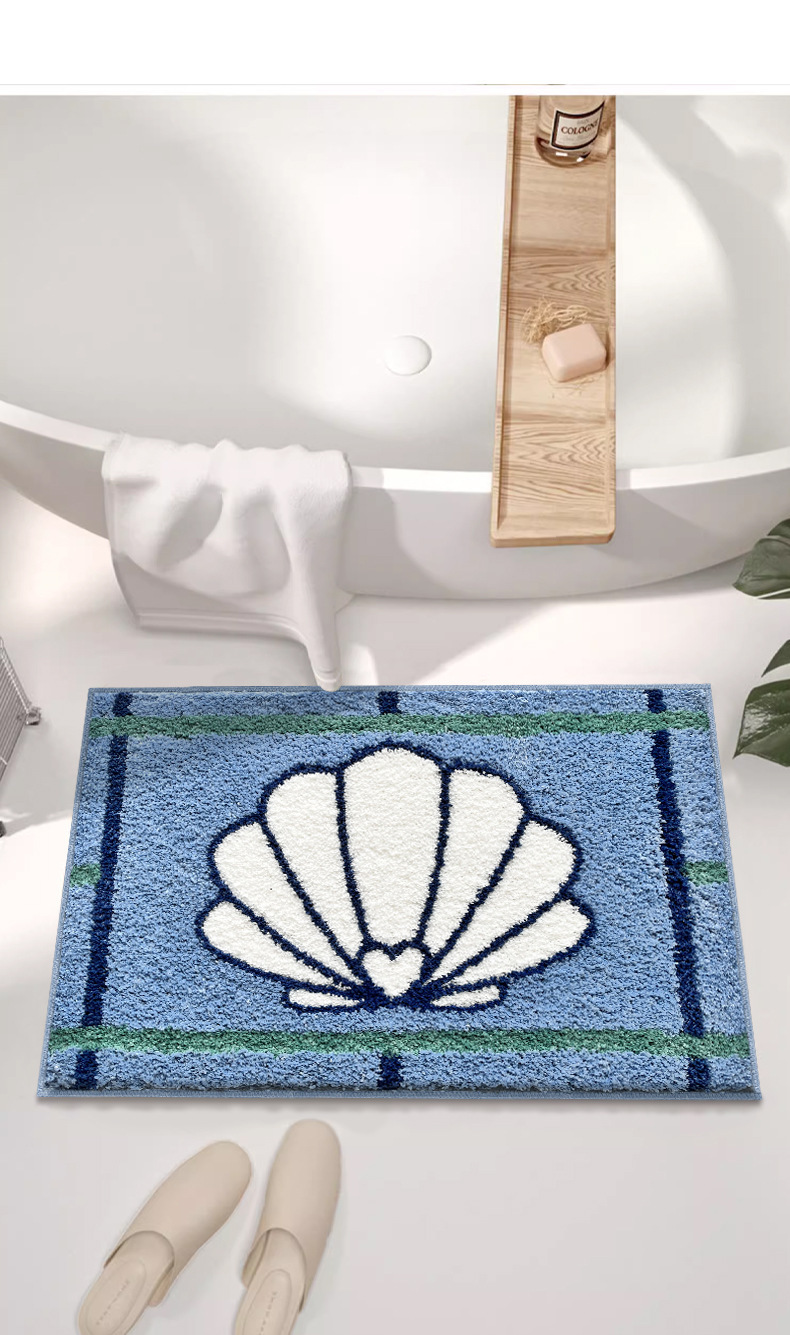 블루 카툰 쉘 욕실 바닥 매트 침실 더러운 저항하는 침대 옆 담요 가정용 흡수성 미끄럼 방지 두꺼운 모조 캐시미어 발 매트스토어 가기