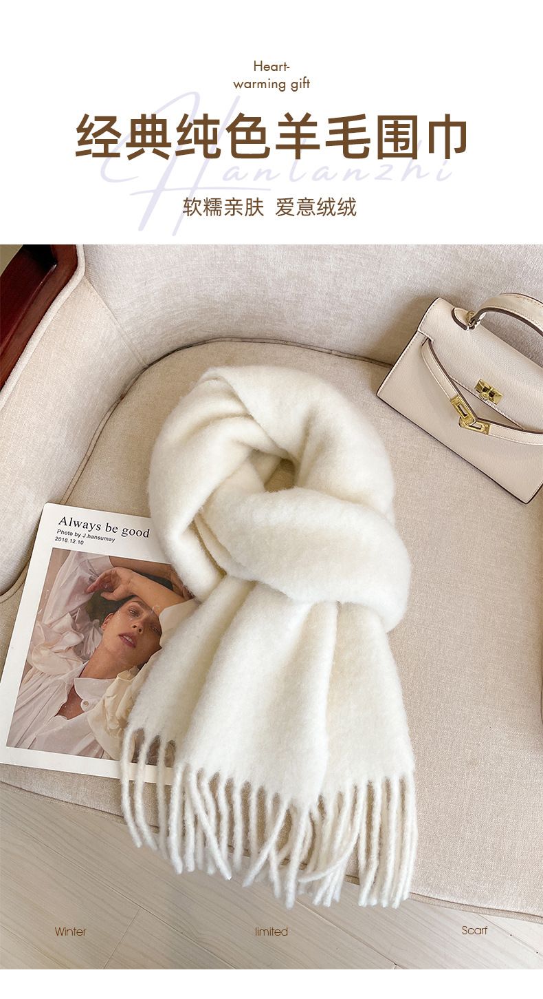 핑크 한국 스타일 양모 혼합 두꺼운 술 목도리 겨울 따뜻한 단색 모헤어 봉제 스카프스토어 가기