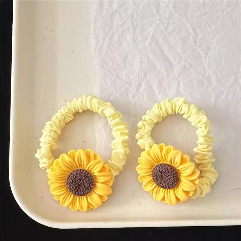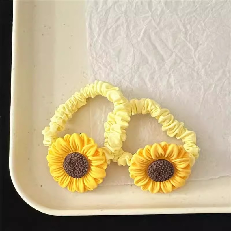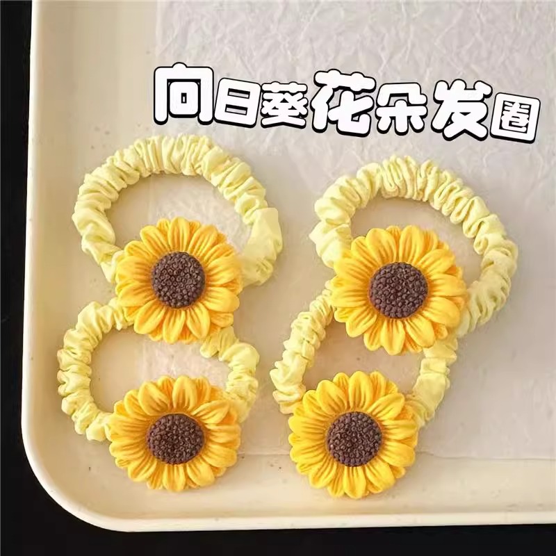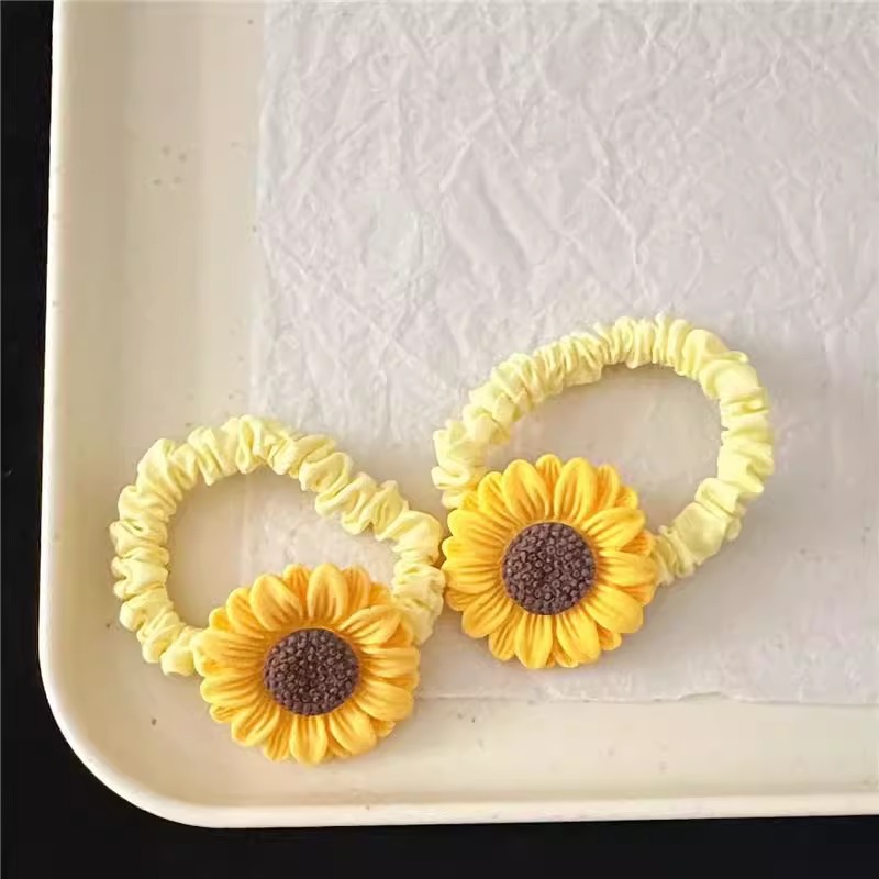 재미있는 해바라기 작은 장 루프 헤어 링 귀여운 달콤한 소녀 높은 색상 가치 소녀 스타일 말꼬리 헤어 로프 고무 액세서리 헤어 액세서리 헤어 액세서리 헤어 액세서리