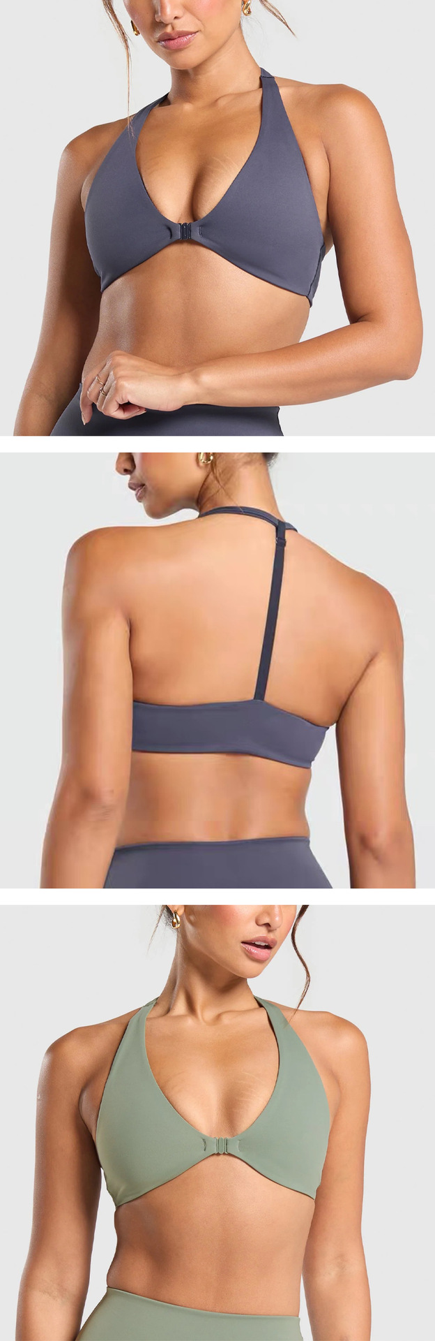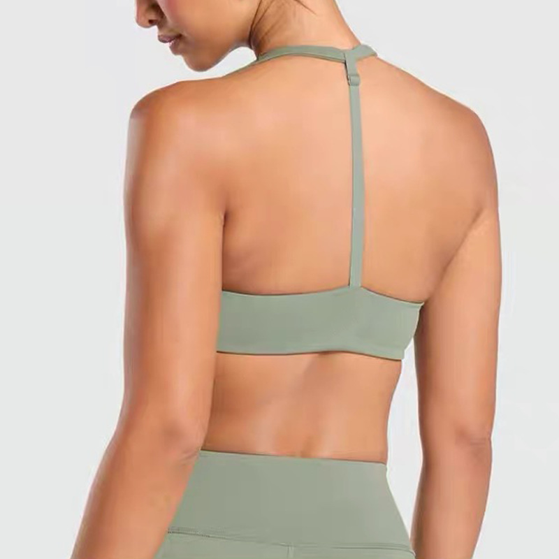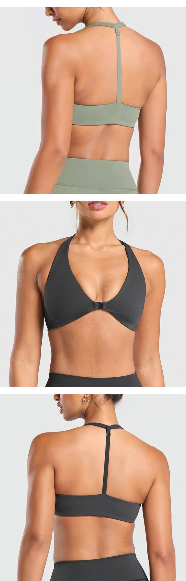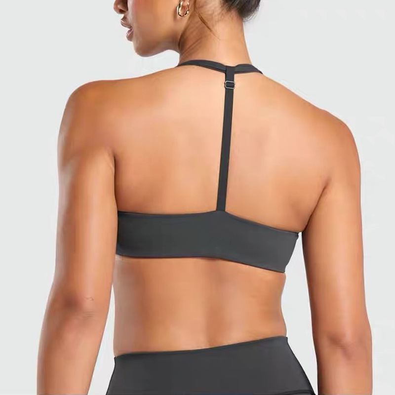 크로스보더 요가 로우넥 홀터넥 뷰티백 여성 속옷, 가슴 패드 내장, 고탄력 통기성, 아웃웨어 가능, 속건 스포츠 브라