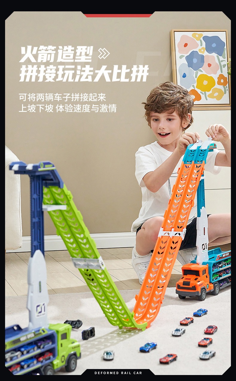 • 관성변형 글라이딩 리프팅 로켓 레일카 [주황색] 무료 트롤리 6대