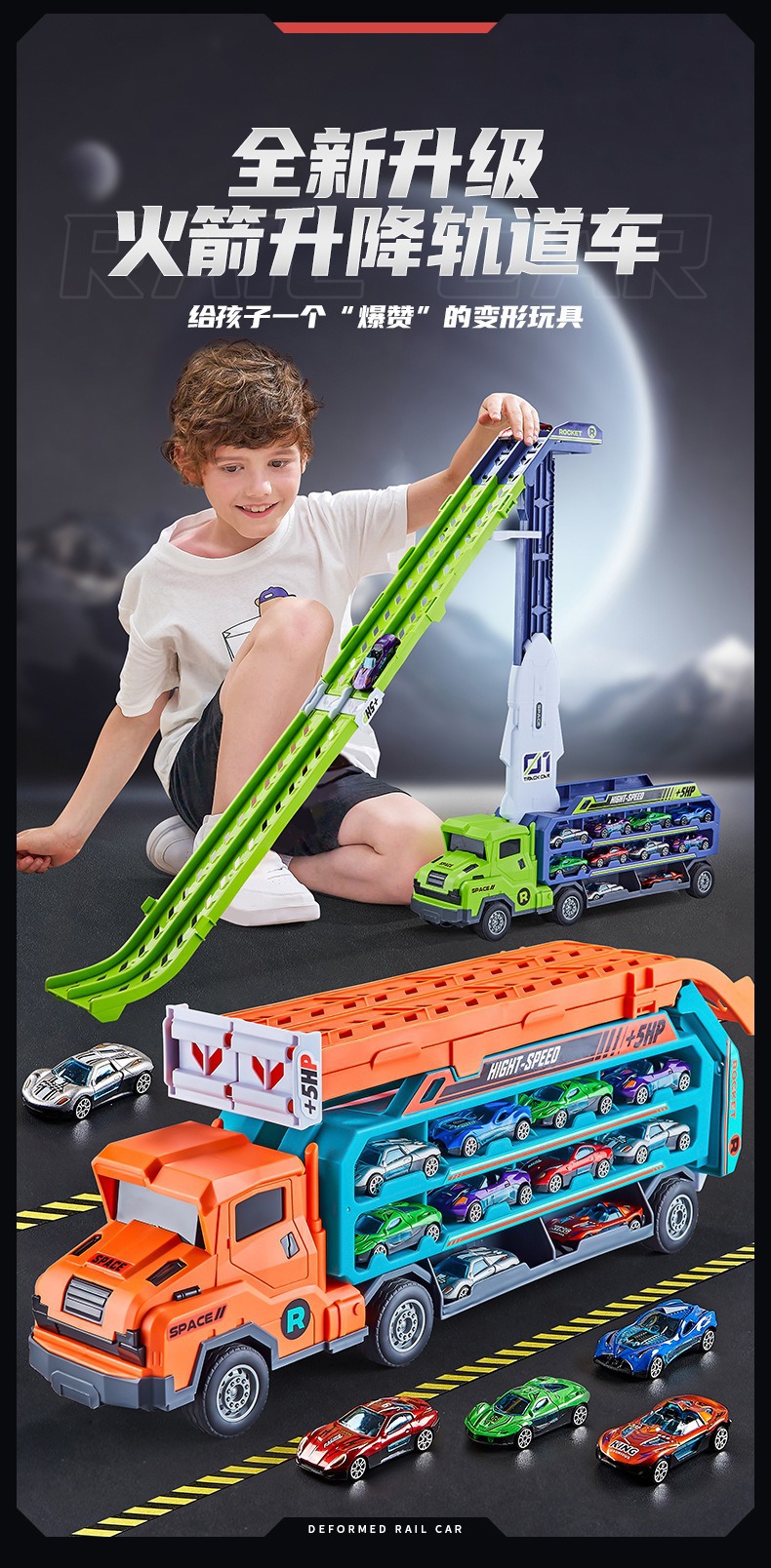 어린이 장난감 도매 대형 관성 슬라이딩 엔지니어링 차량 3 차원 리프팅 레일 자동차 자동차 국경 소년 선물