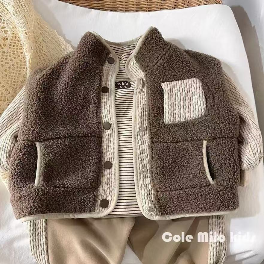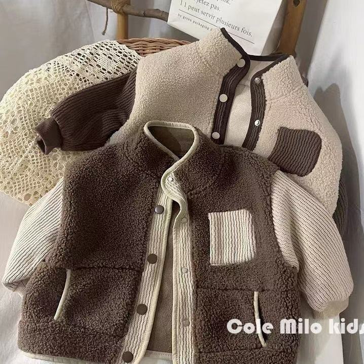 모리 스타일 바느질 한국 스타일 양모 어린이 코트 가을과 겨울 스타일 소년 소녀 코트 아기 카디건 어린이 2024