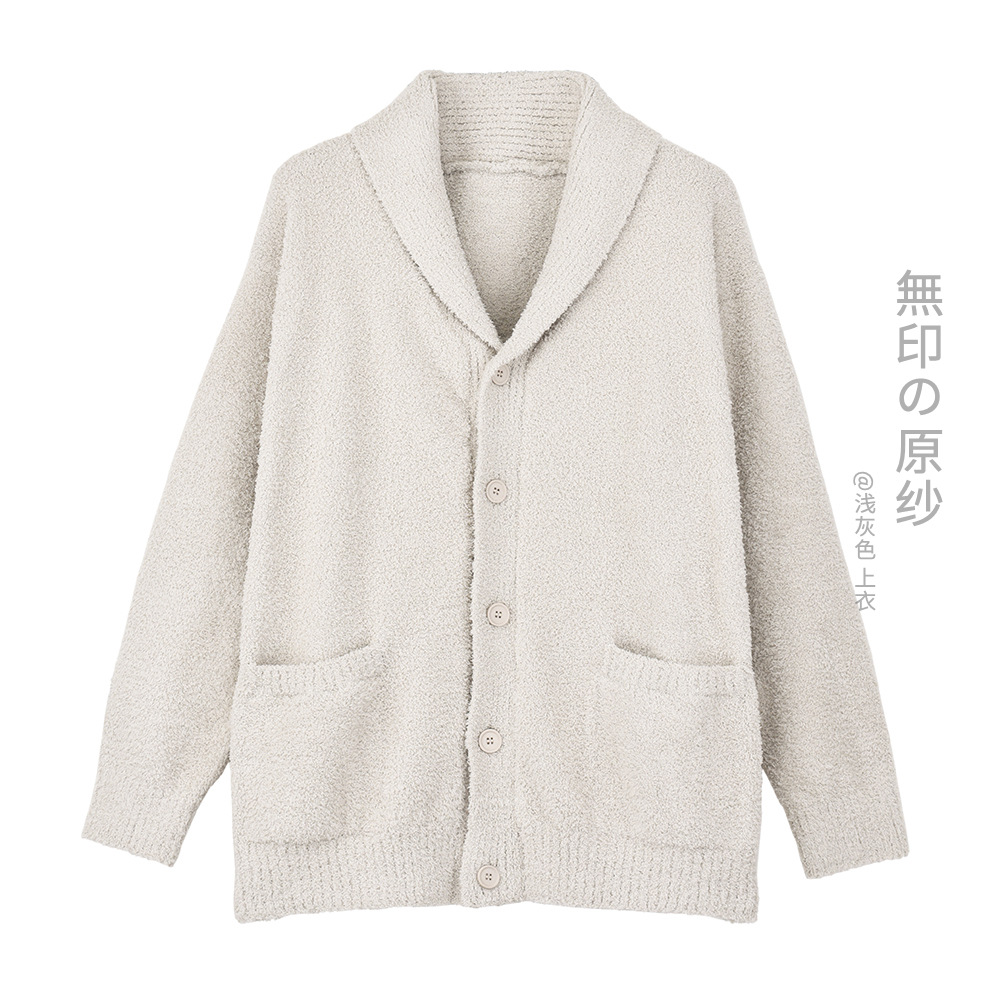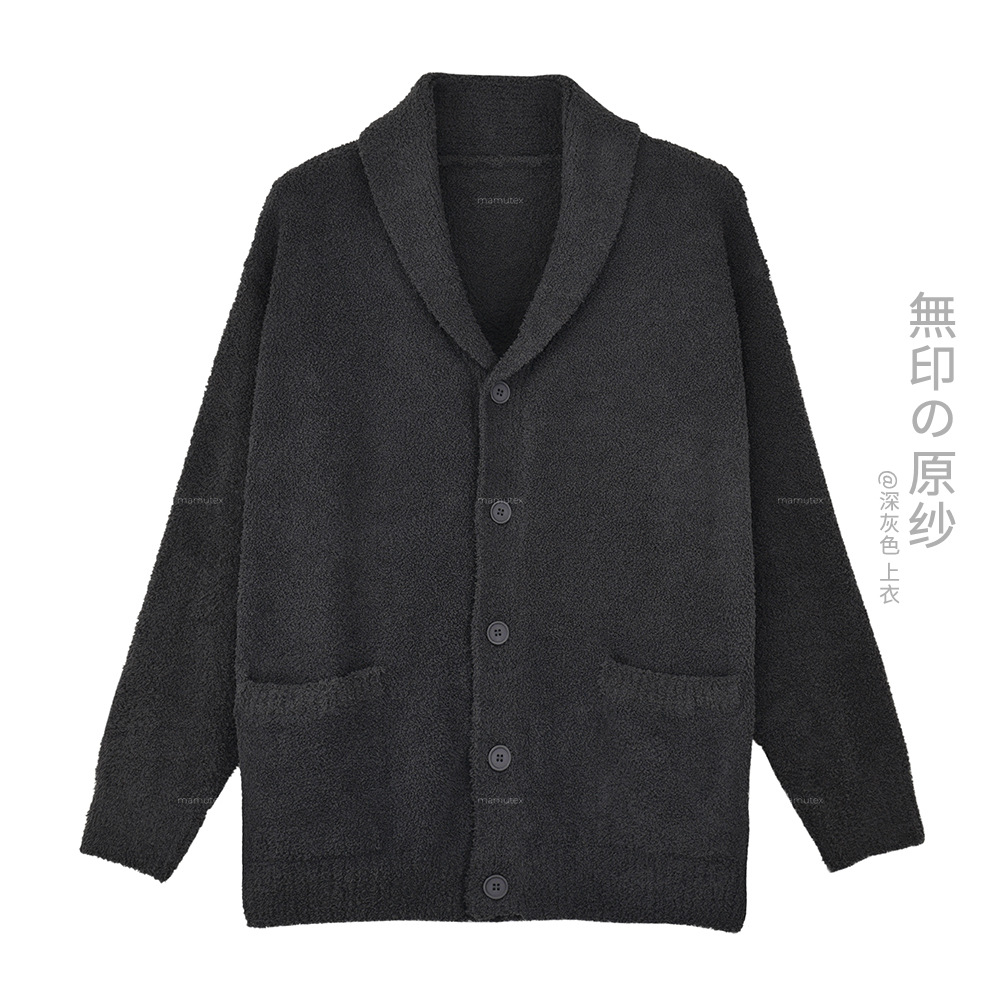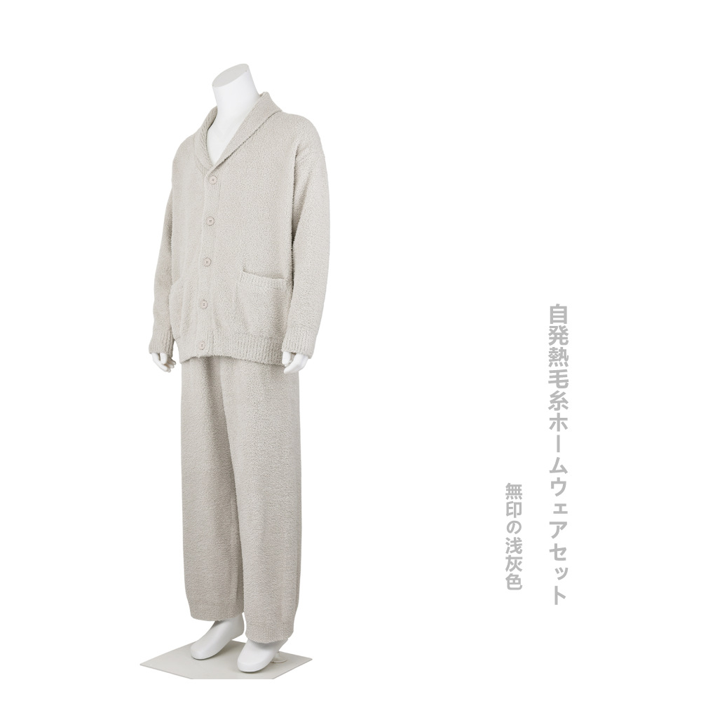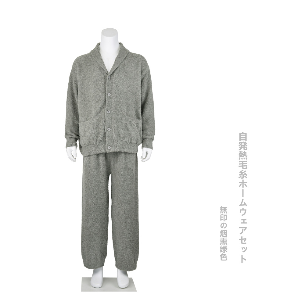 인쇄되지 않은 원본 원사 가을과 겨울 따뜻한 난방 부드러운 봉제 홈 옷 남성용 마이크로 탄성 소프트 카디건 바지 파자마스토어 가기
