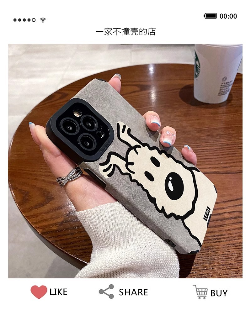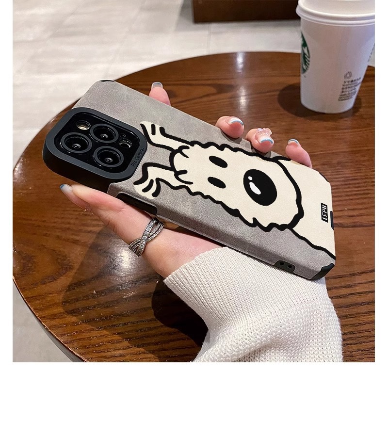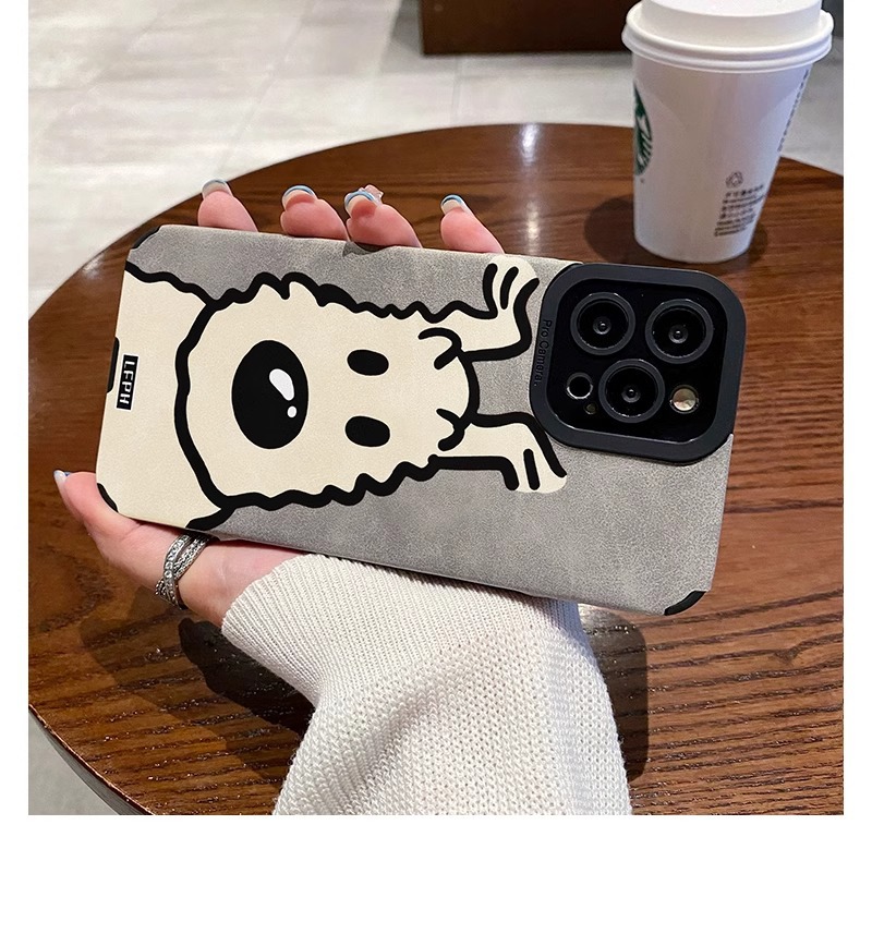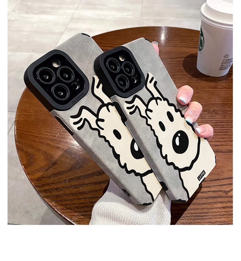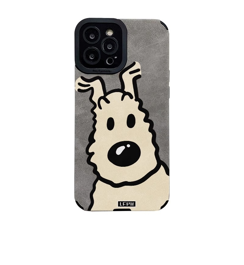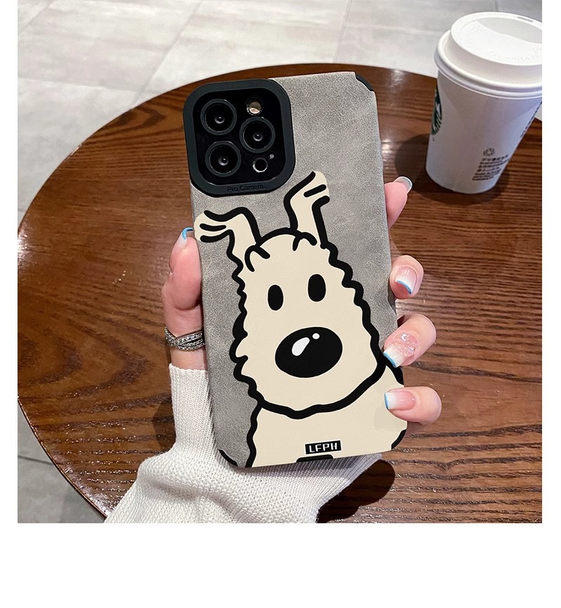 곱슬 머리 강아지 iPhone16Promax 전화 케이스 가을 가죽 패턴 애플 15Pro 새로운 14promax스토어 가기