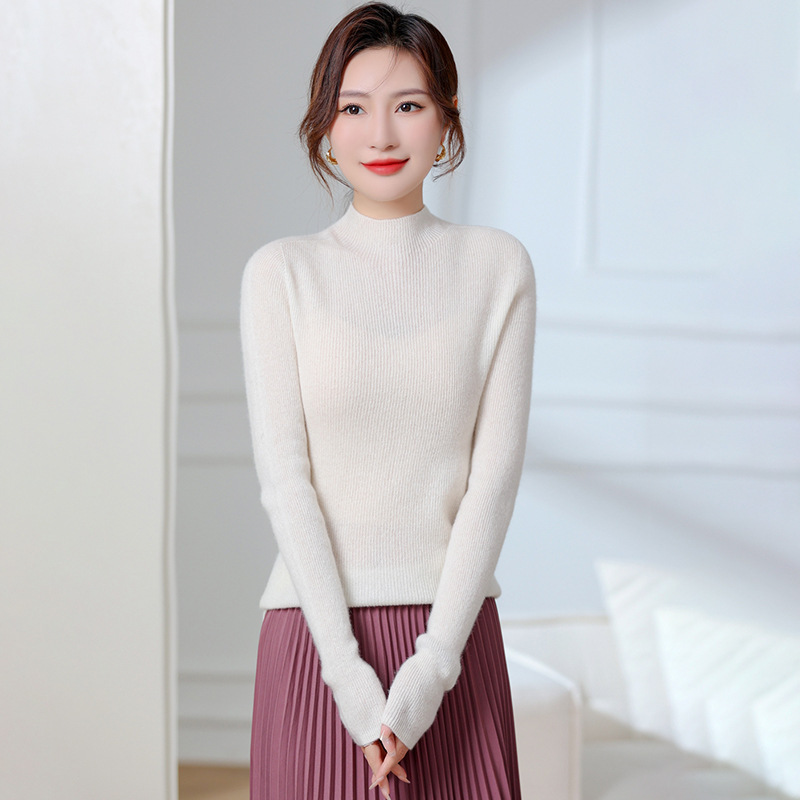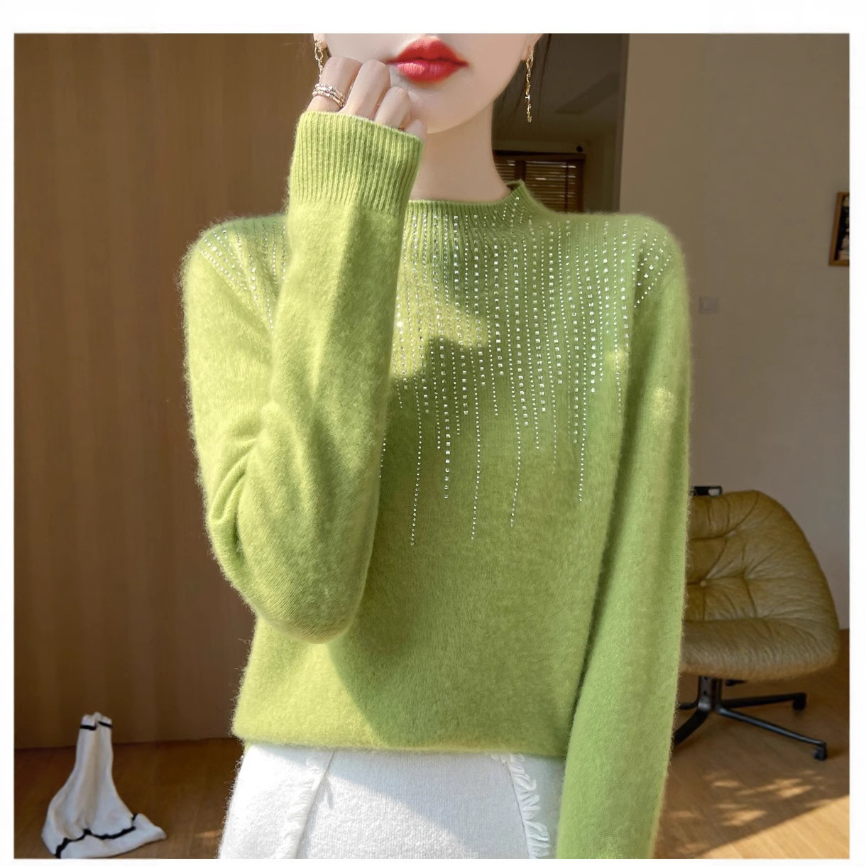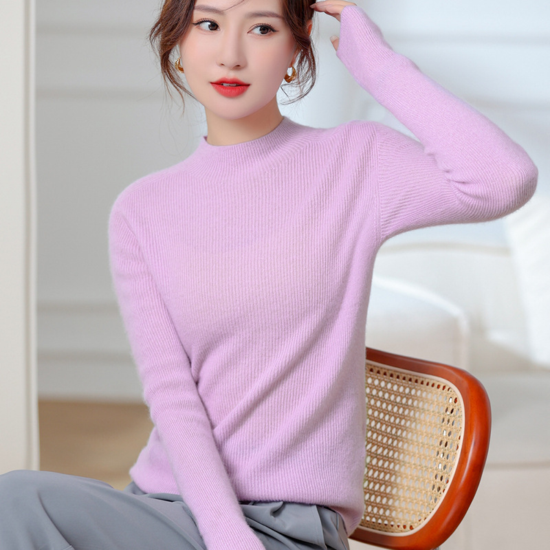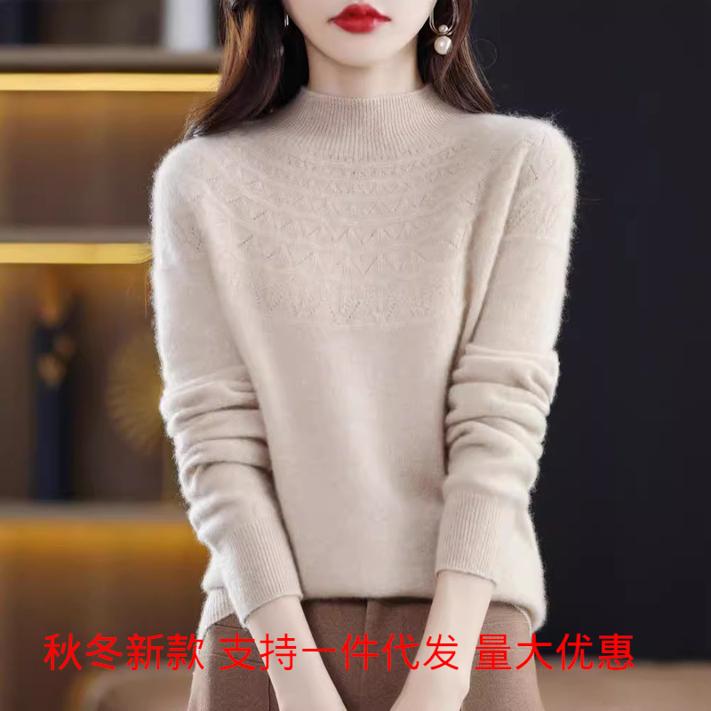 2024 캐시미어 100% 캐시미어, 첫 번째 라인 성형 세미 터틀넥 드로우 다운 블라우스 부드럽고 편안한 패브릭스토어 가기