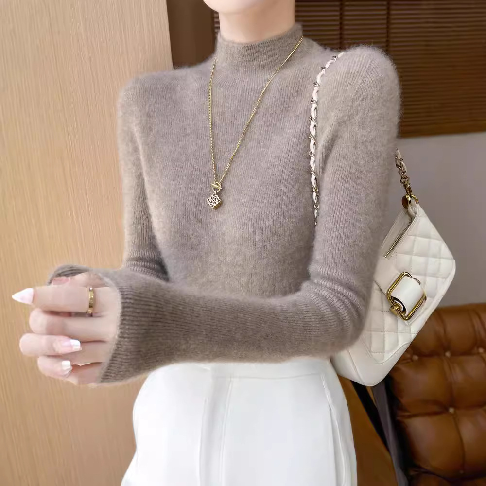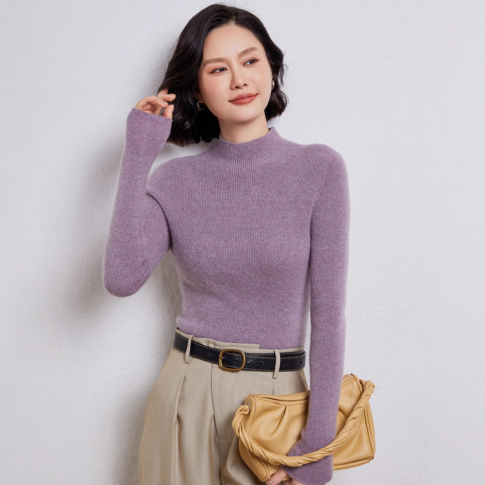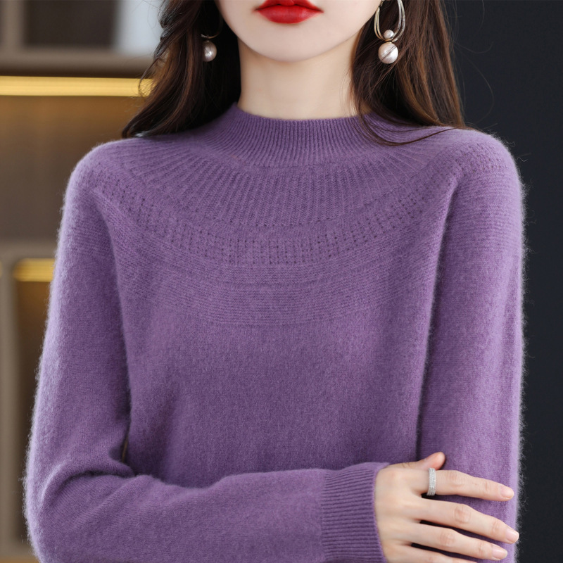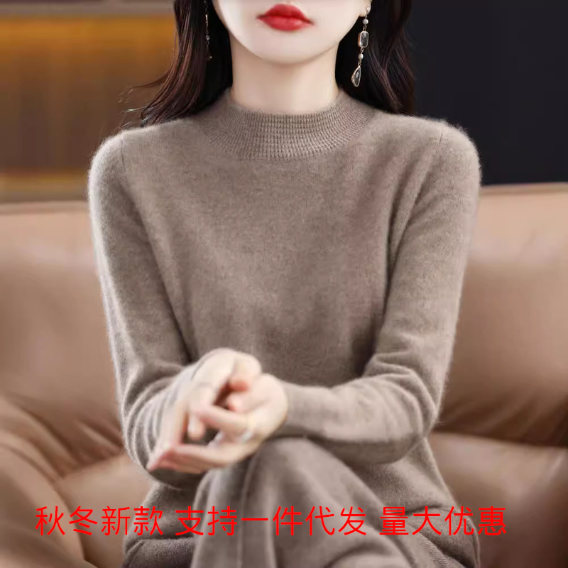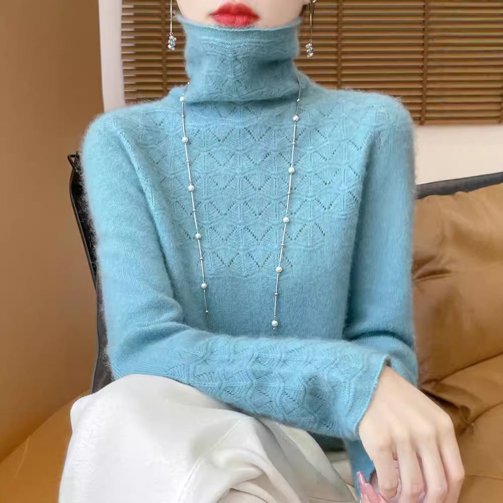 2024 캐시미어 100% 캐시미어, 첫 번째 라인 성형 세미 터틀넥 드로우 다운 블라우스 부드럽고 편안한 패브릭