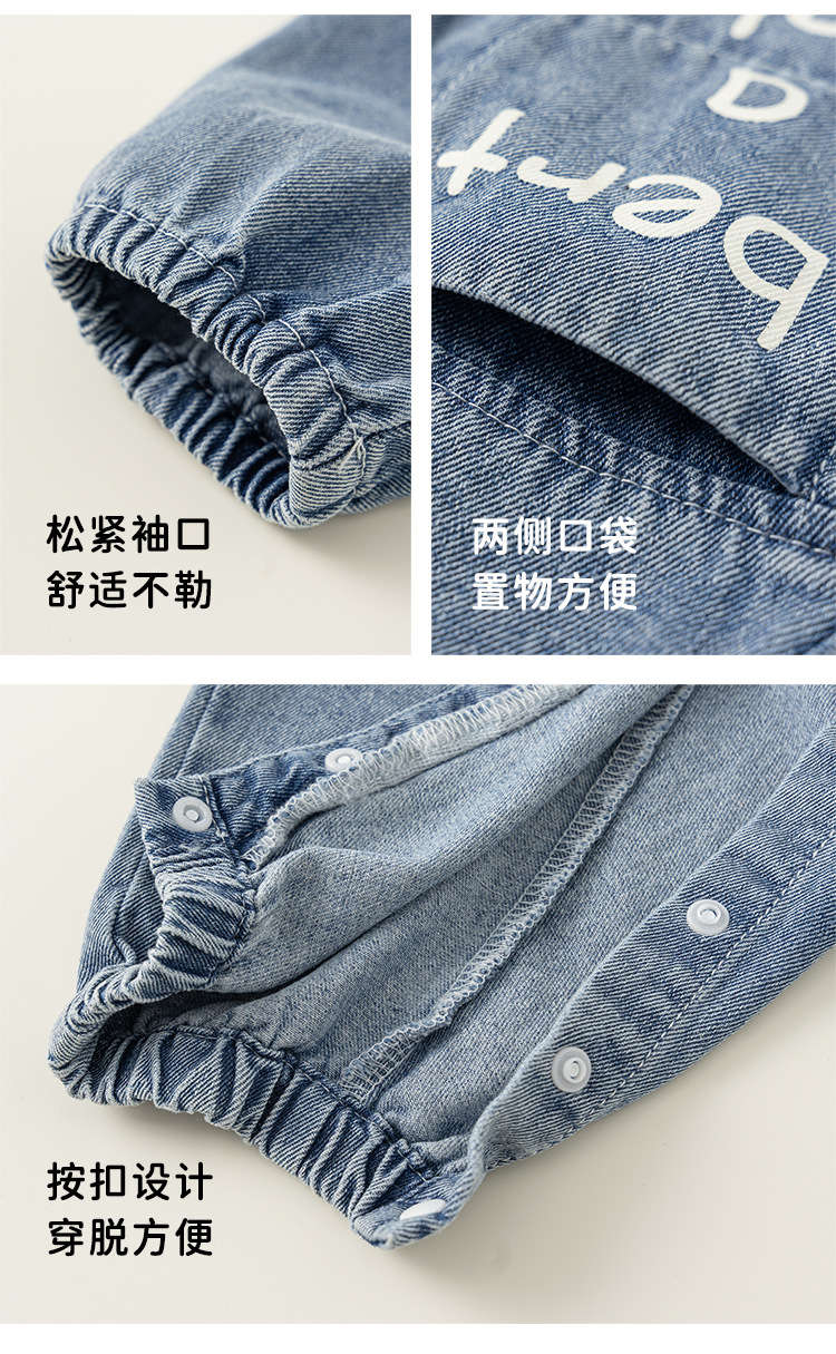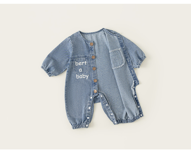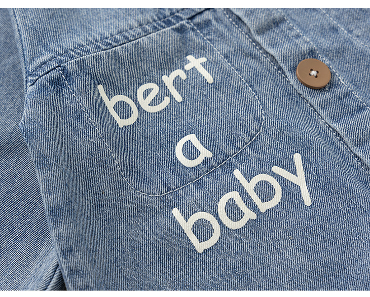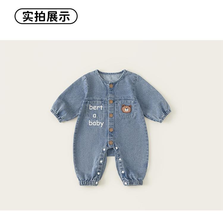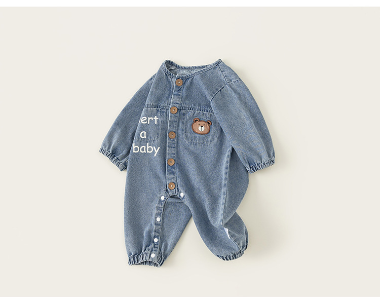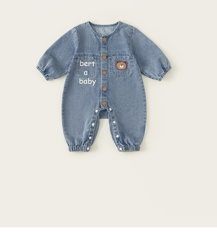 Bangxuan 어린이 봄 간단한 점프 수트 소년의 알파벳 곰 자수 점프 수트 신생아 데님 등반 세트