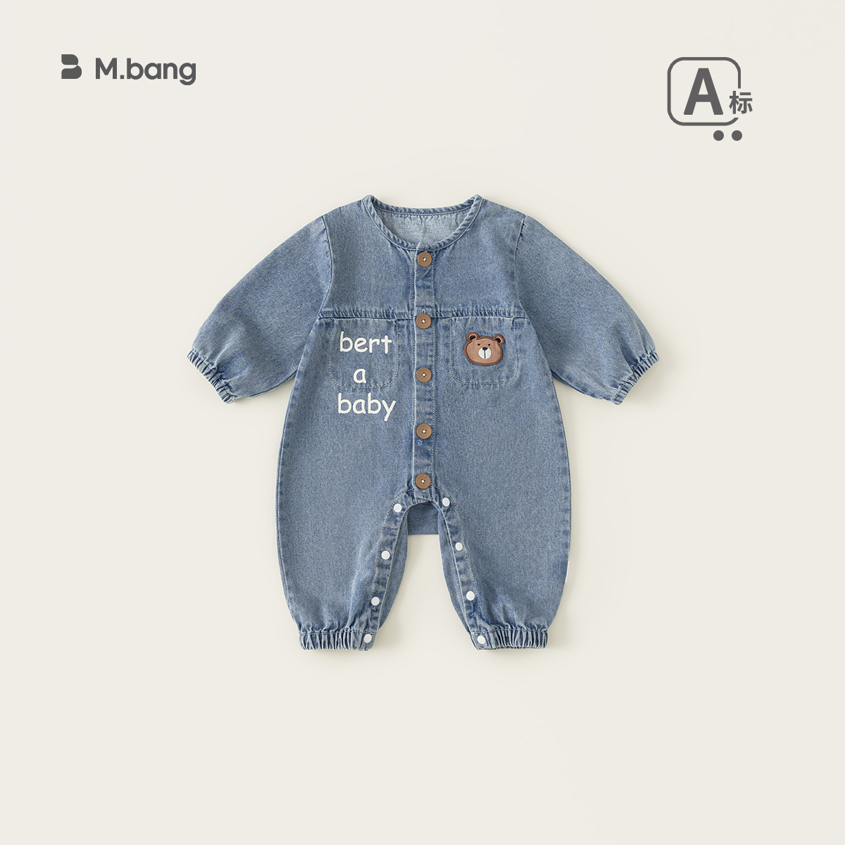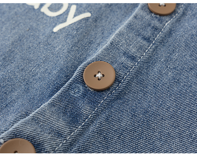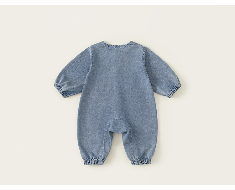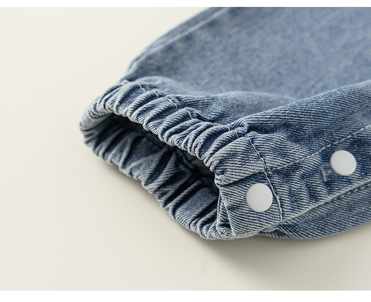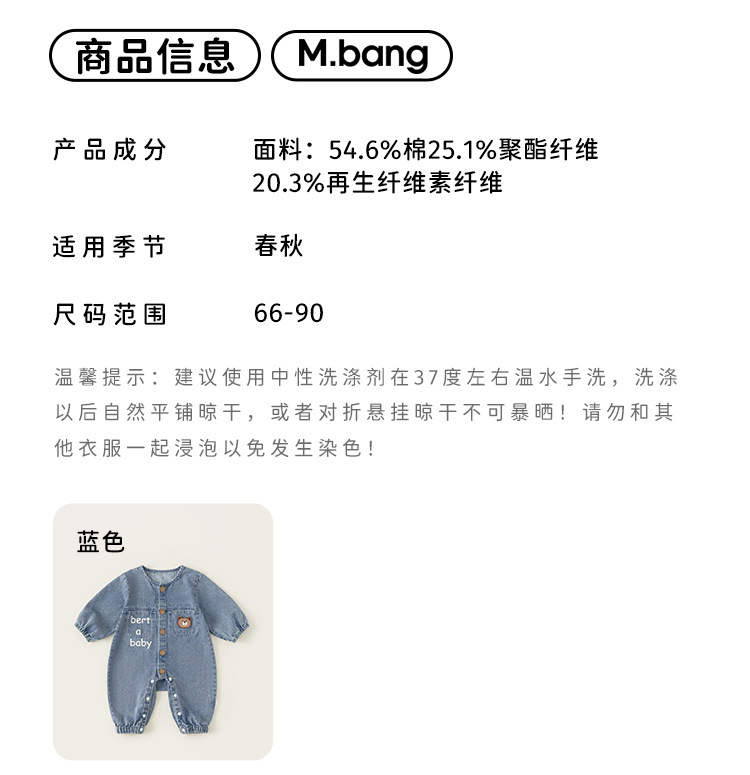 Bangxuan 어린이 봄 간단한 점프 수트 소년의 알파벳 곰 자수 점프 수트 신생아 데님 등반 세트
