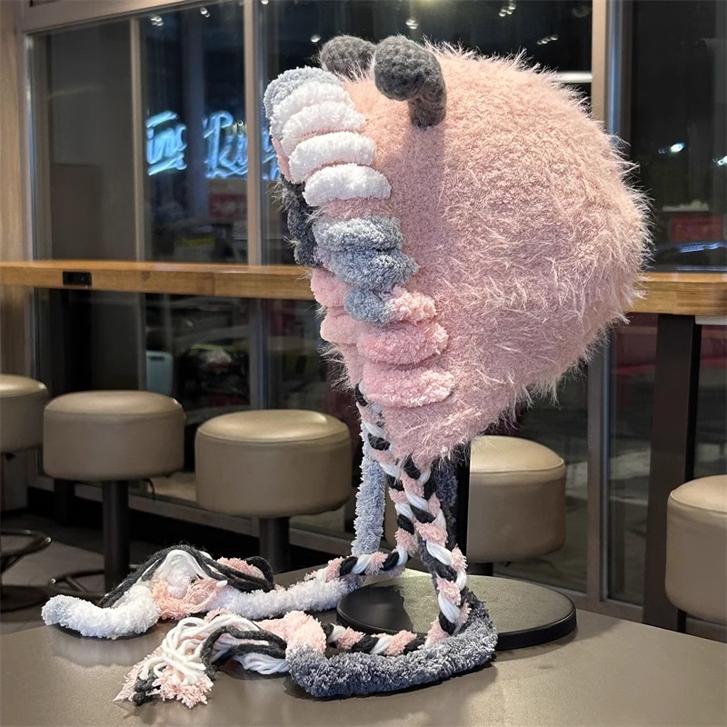 귀여운 만화 작은 괴물 솜털 모자 아이들의 가을과 겨울 두꺼운 따뜻한 귀 보호 모자 사이클링 방풍 바오터우 모자스토어 가기