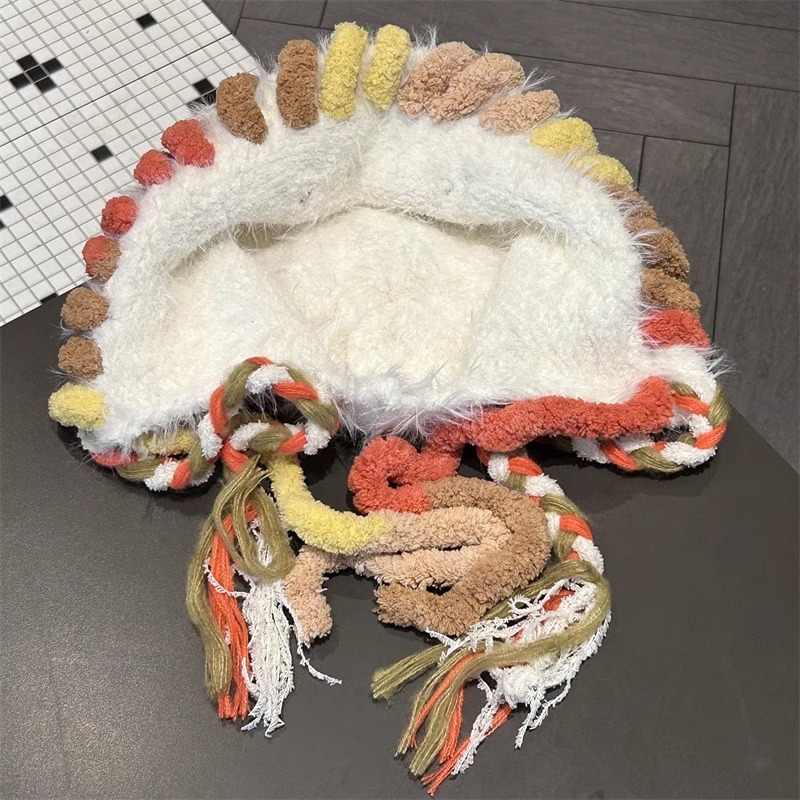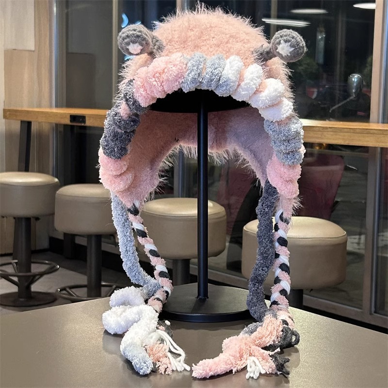 귀여운 만화 작은 괴물 솜털 모자 아이들의 가을과 겨울 두꺼운 따뜻한 귀 보호 모자 사이클링 방풍 바오터우 모자
