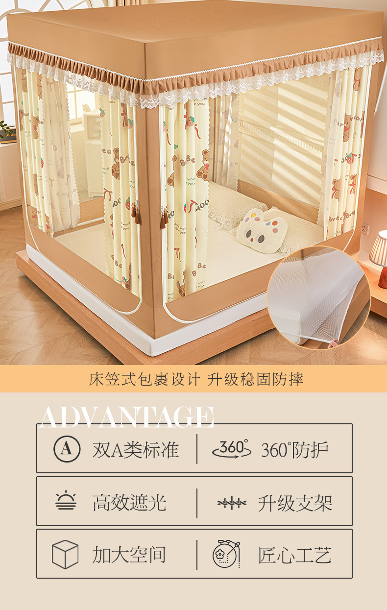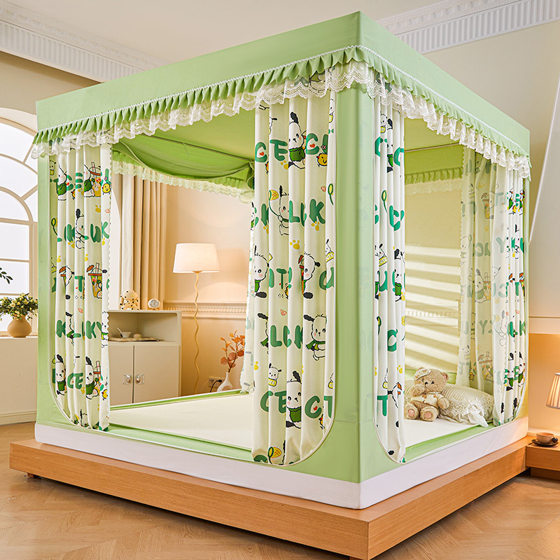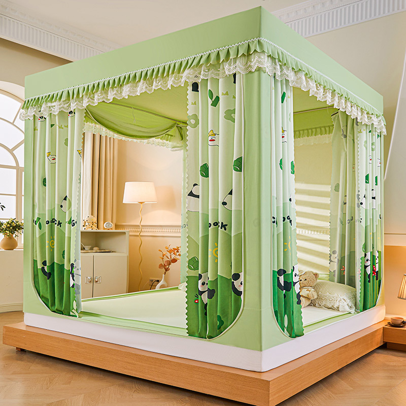 아이징메이 2025a 어린이용 낙상 방지 모기장, 3개의 출입문, 침대용, 만화 캐릭터, 가정용, 먼지 방지 침대 커튼
