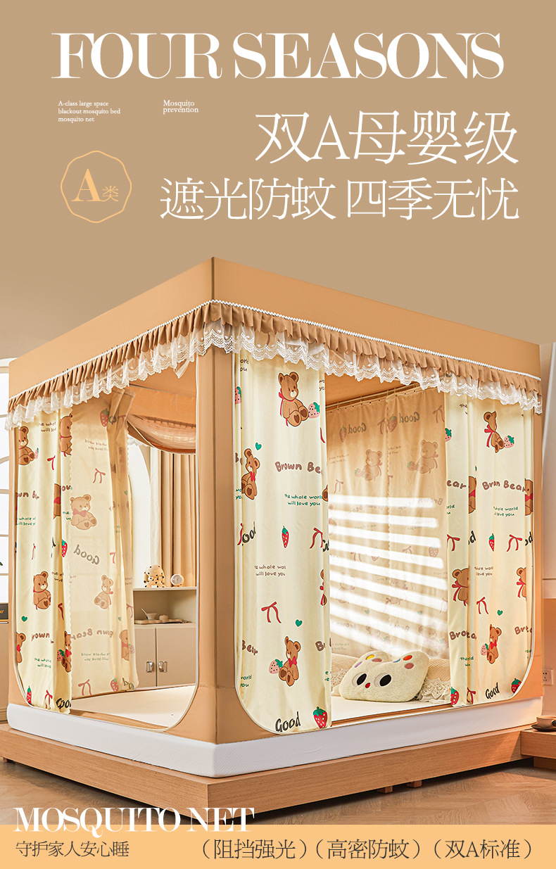 아이징메이 2025a 어린이용 낙상 방지 모기장, 3개의 출입문, 침대용, 만화 캐릭터, 가정용, 먼지 방지 침대 커튼스토어 가기