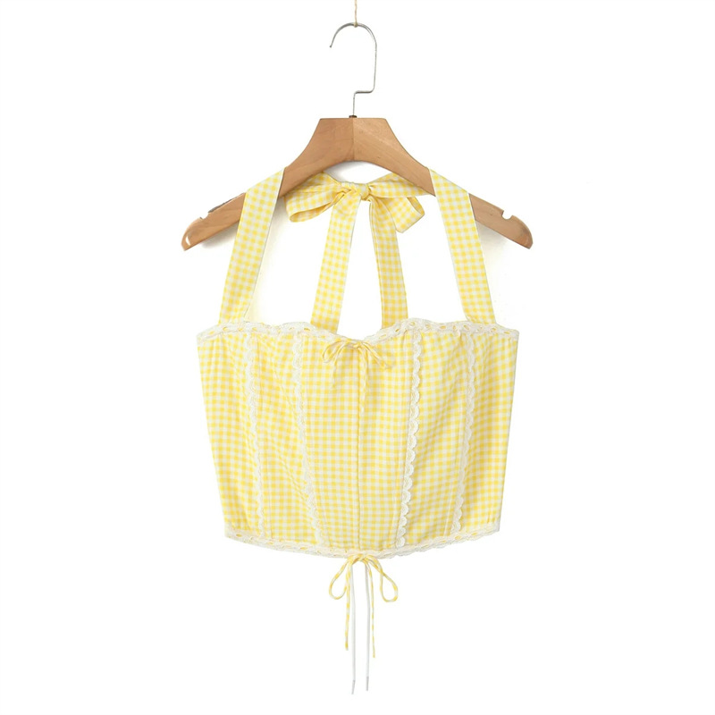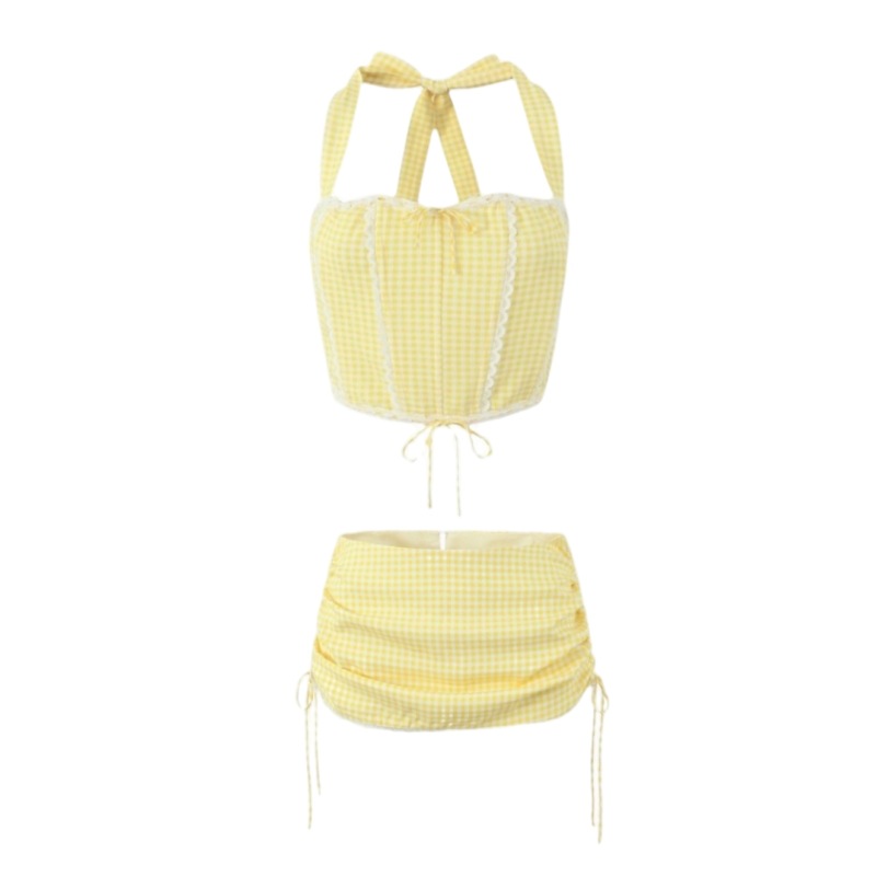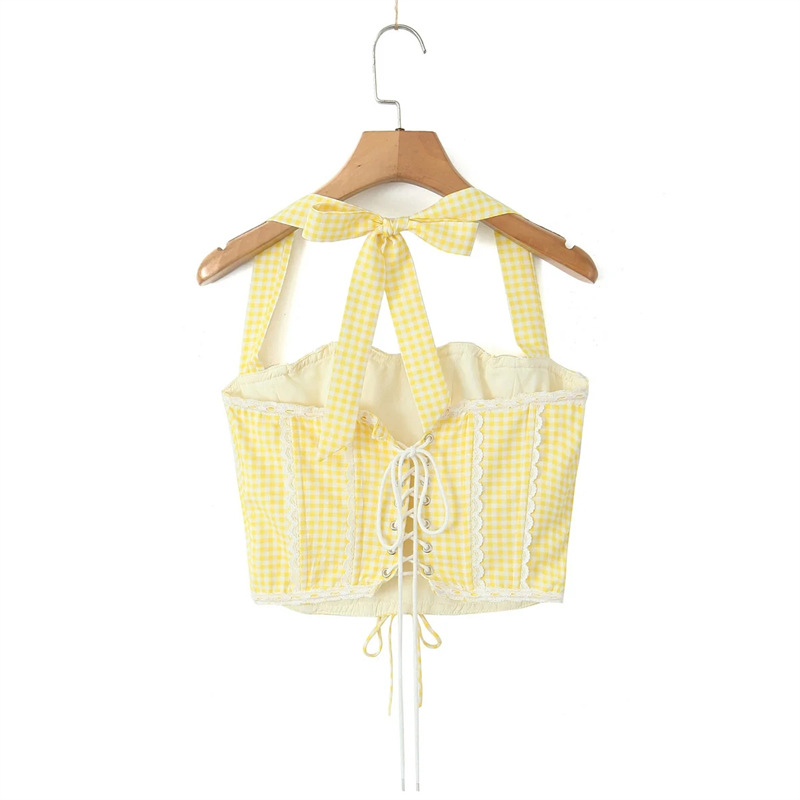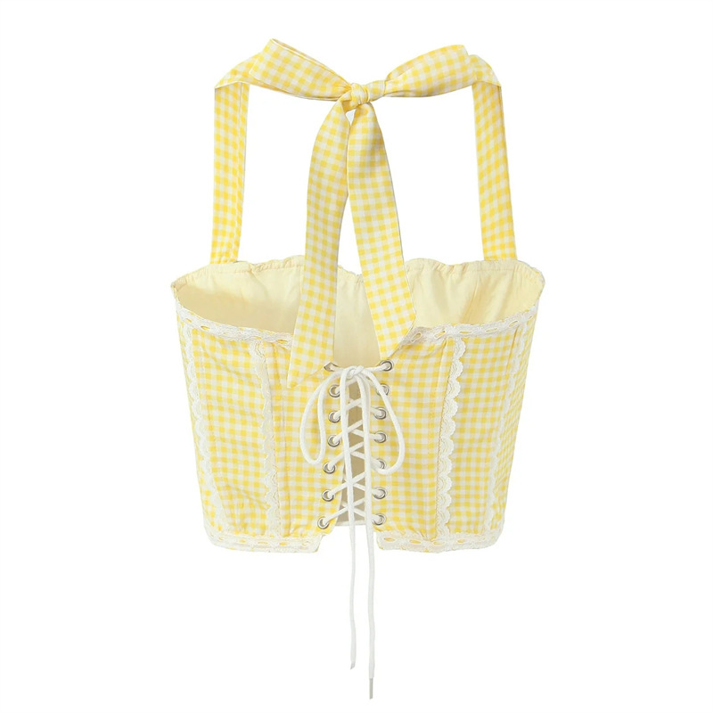홀터와 카미 솔레 여성의 등 드로우 스트링 할로우 쇼트 탑 로우 허리 힙합 미니 스커트와 스파이스 소녀 스타일 조끼