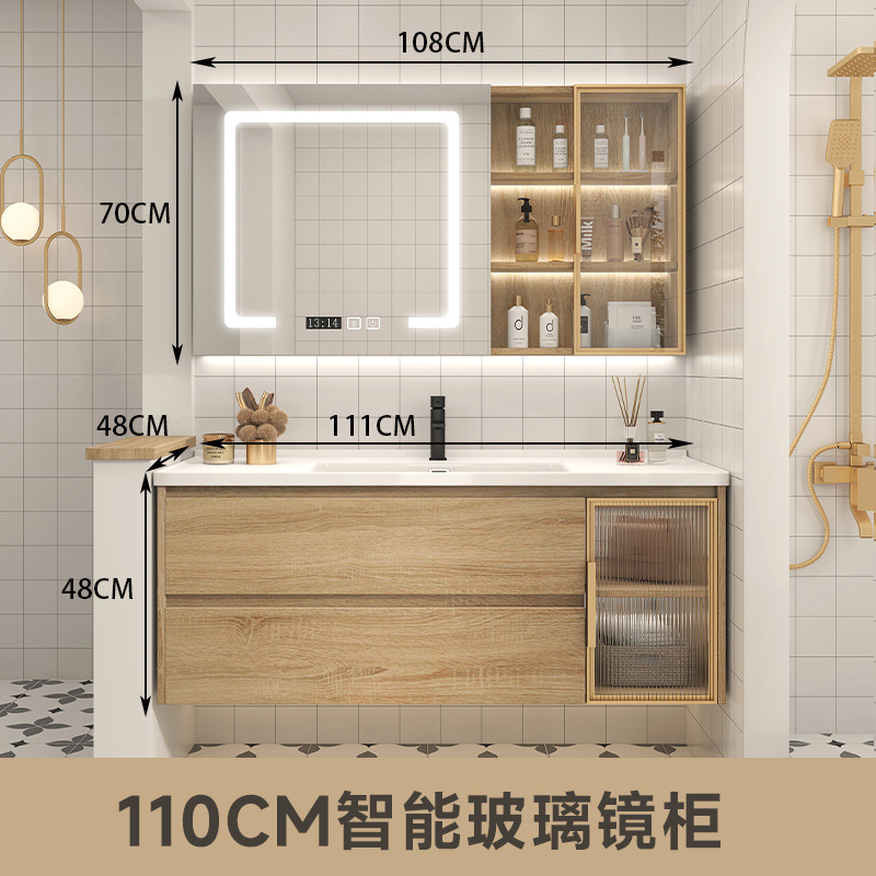 • 1.1m 메인 캐비닛 + 유리 도어 스마트 미러 캐비닛