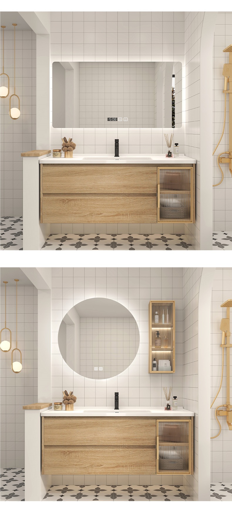 일본식 통나무 스타일 욕실 캐비닛 거울 캐비닛 조합 욕실 세면대 캐비닛 세탁기 통합 세면대 캐비닛 세트