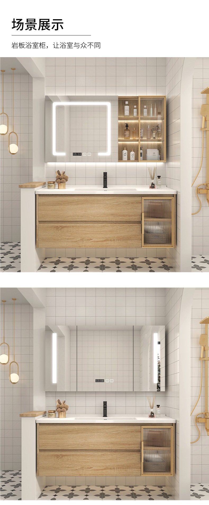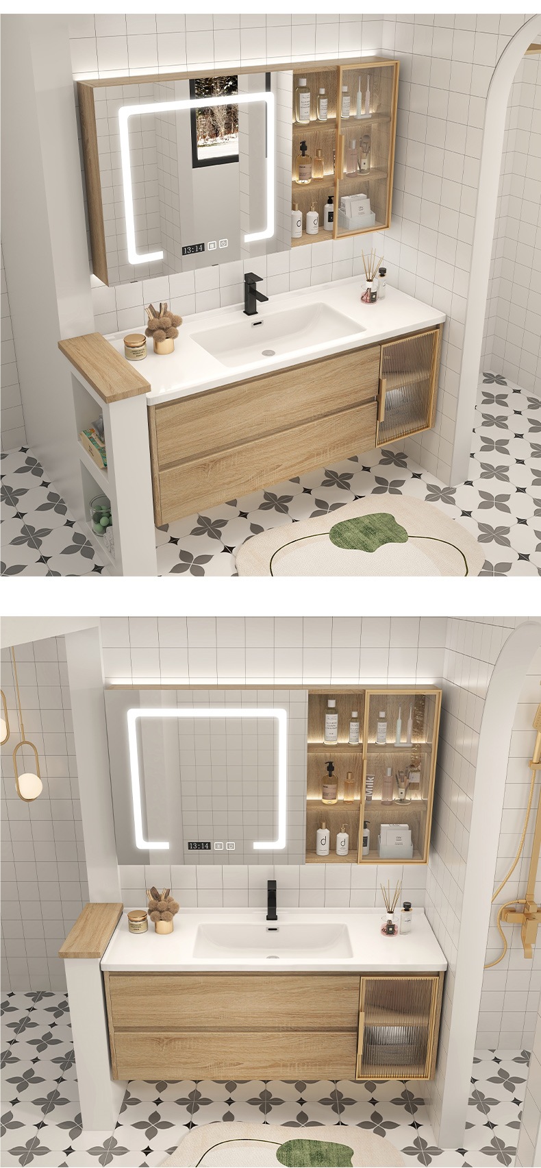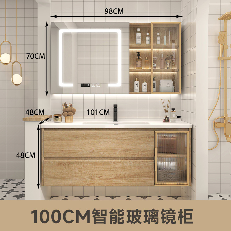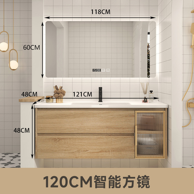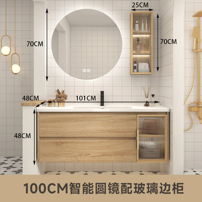 일본식 통나무 스타일 욕실 캐비닛 거울 캐비닛 조합 욕실 세면대 캐비닛 세탁기 통합 세면대 캐비닛 세트스토어 가기