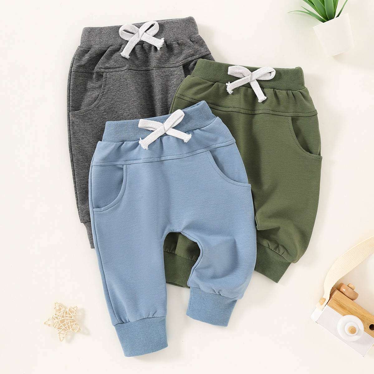 소년 크로스보더 가을, 겨울 단색 장식 리본 바지 일일 캐주얼 외출 아동 바지 3 팩스토어 가기
