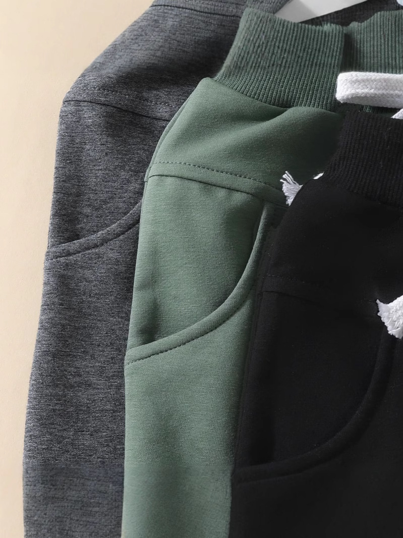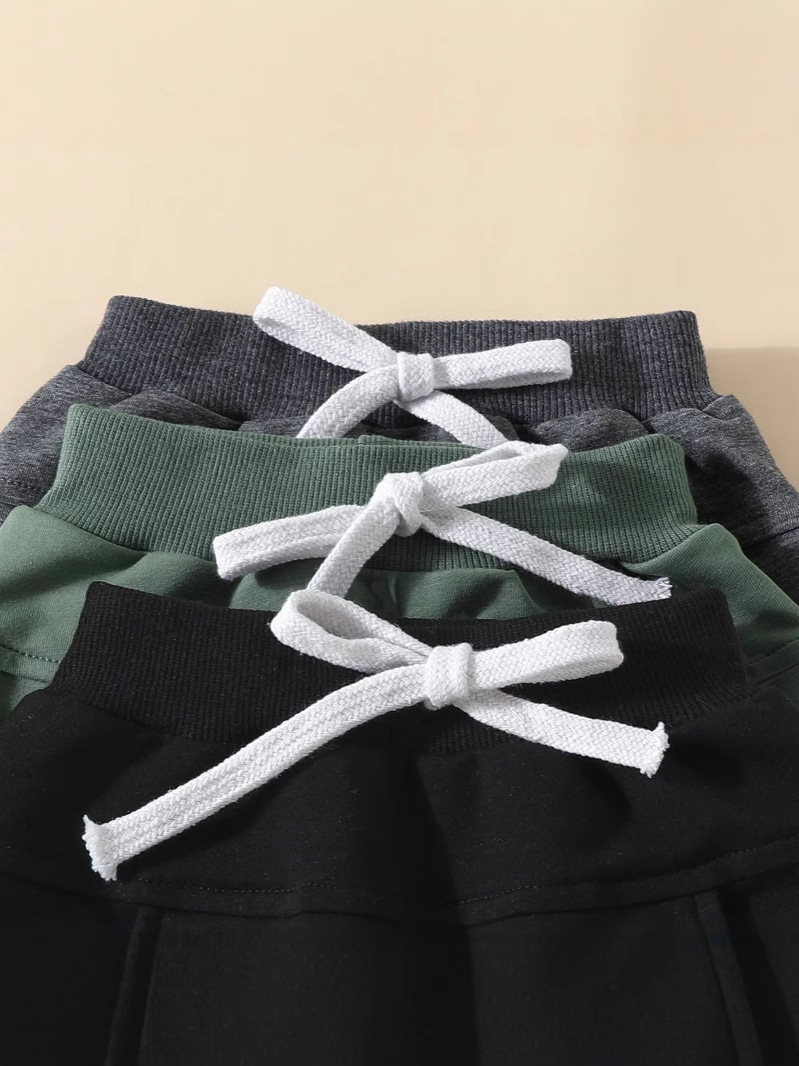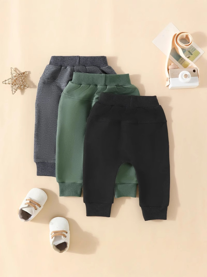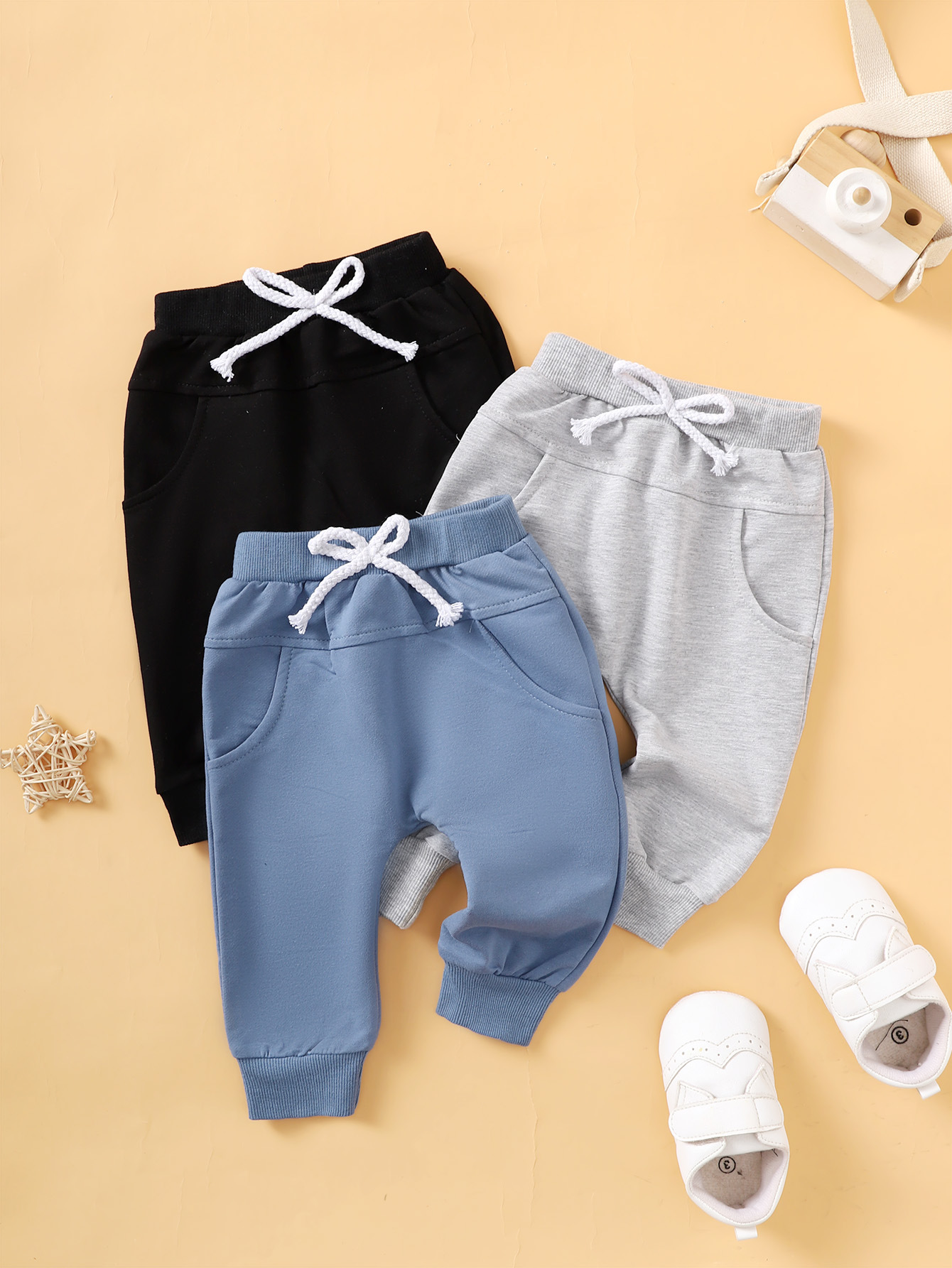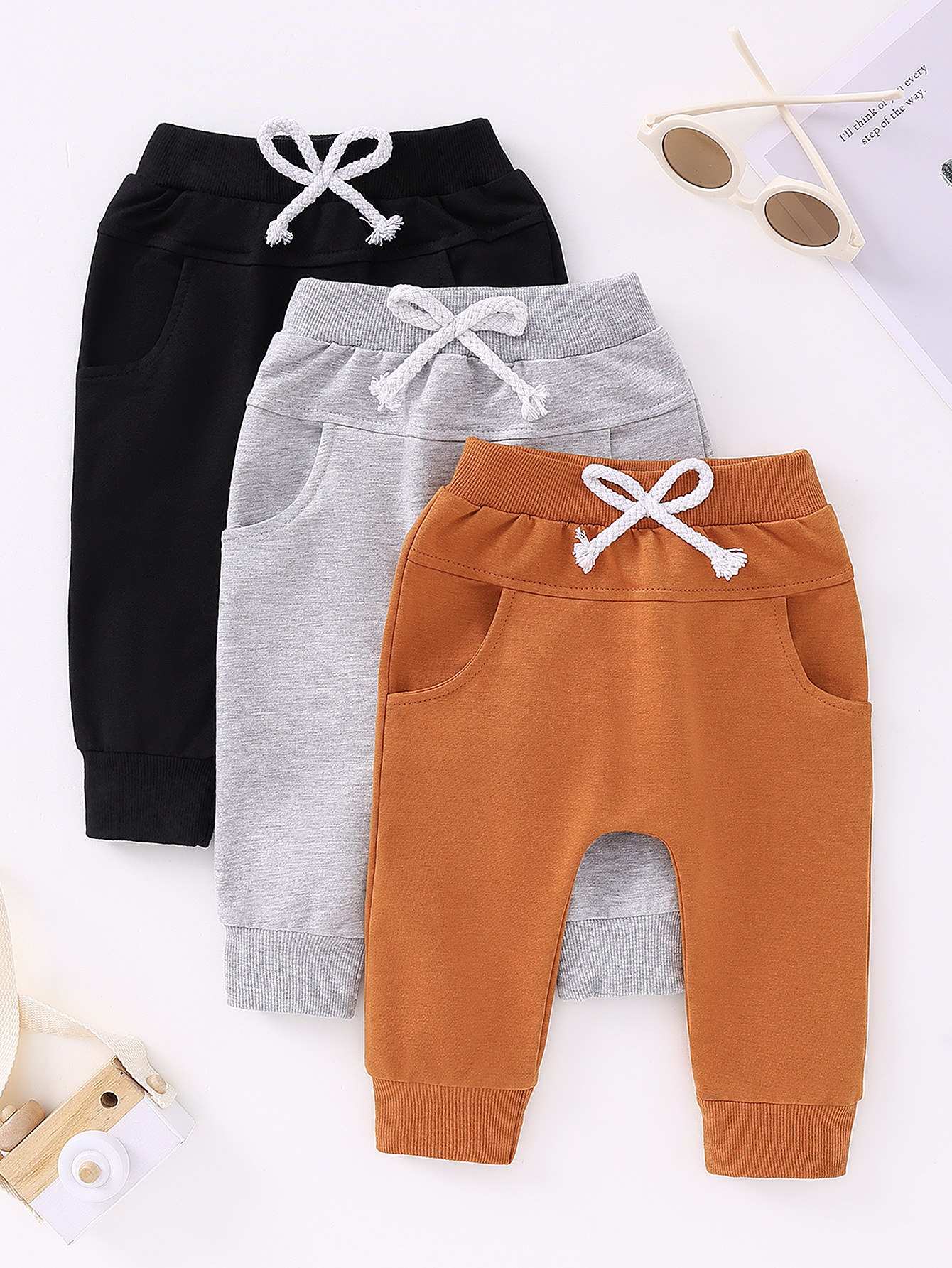 소년 크로스보더 가을, 겨울 단색 장식 리본 바지 일일 캐주얼 외출 아동 바지 3 팩