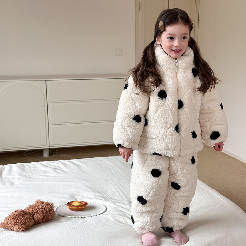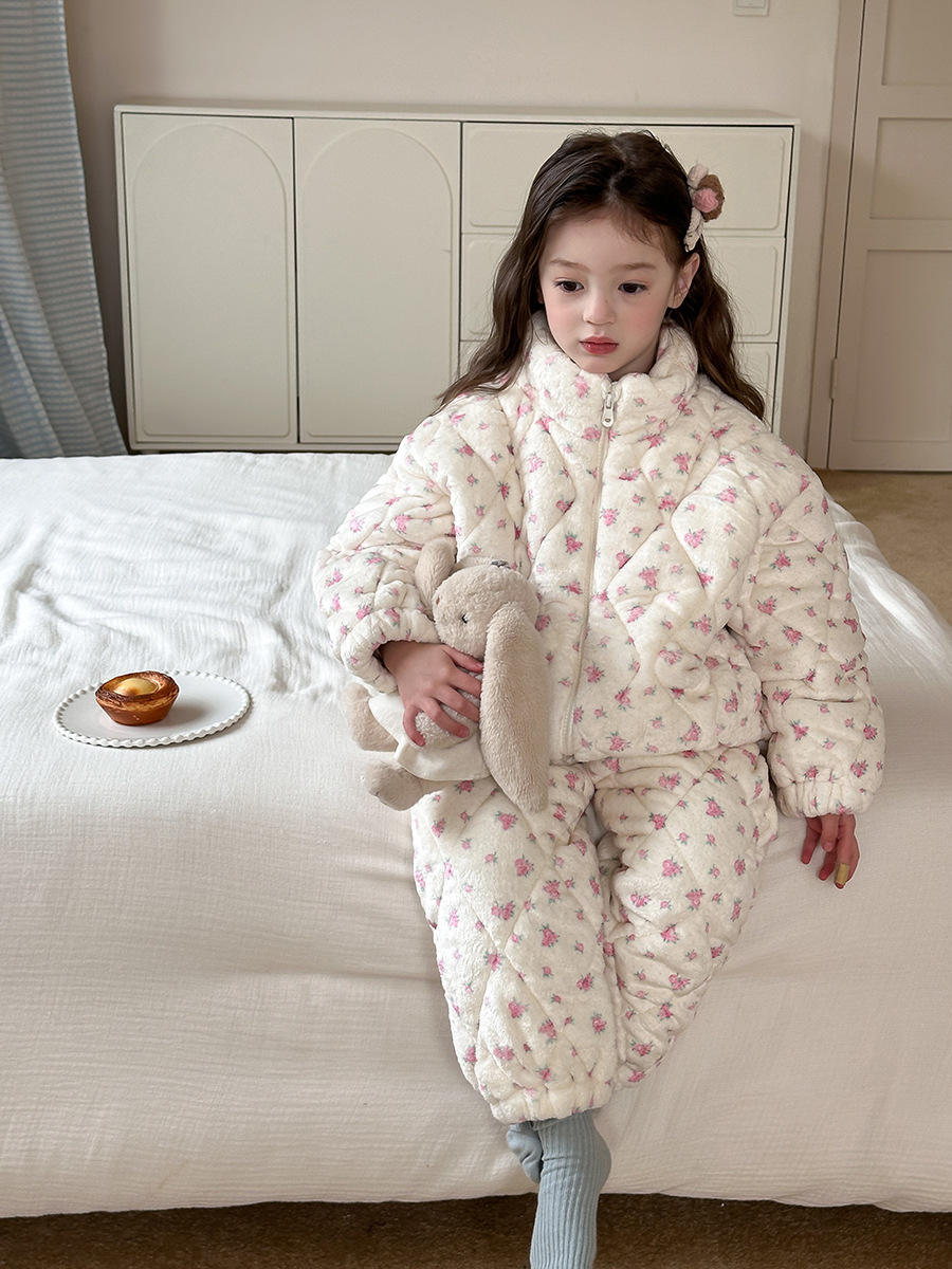 【클리어런스 세일】2024 겨울 두꺼운 플리스 홈웨어 아기용 파라플리스 실크 느낌 면 만화 캐릭터 잠옷 세트스토어 가기
