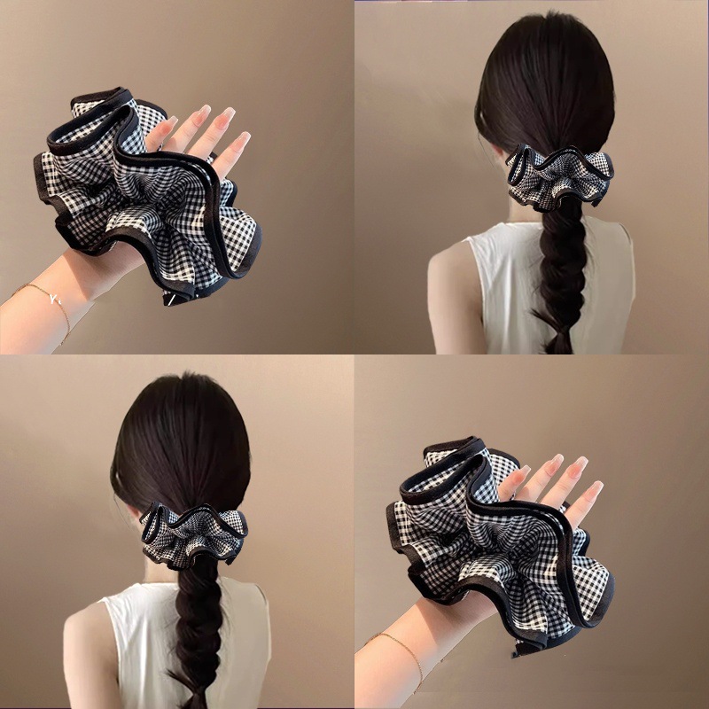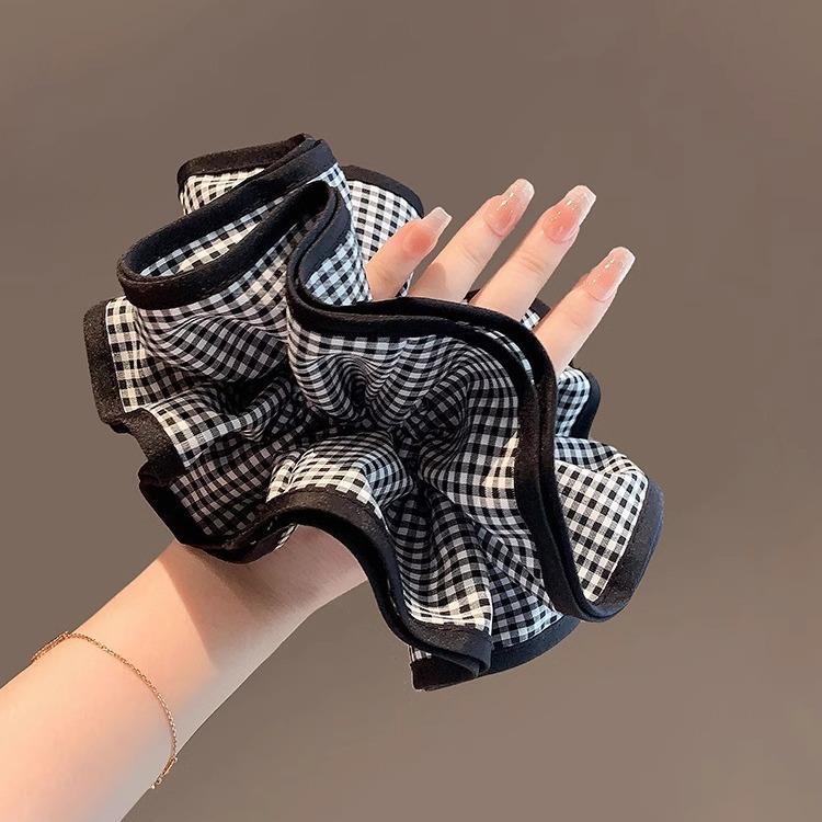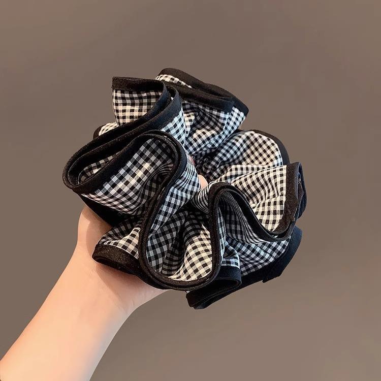2024 빈티지 패션 큰 지방 소시지 링 흑백 격자 무늬 달콤한 주름 봉오리 머리 반지 머리 꽃 헤어 액세서리 헤어 로프스토어 가기