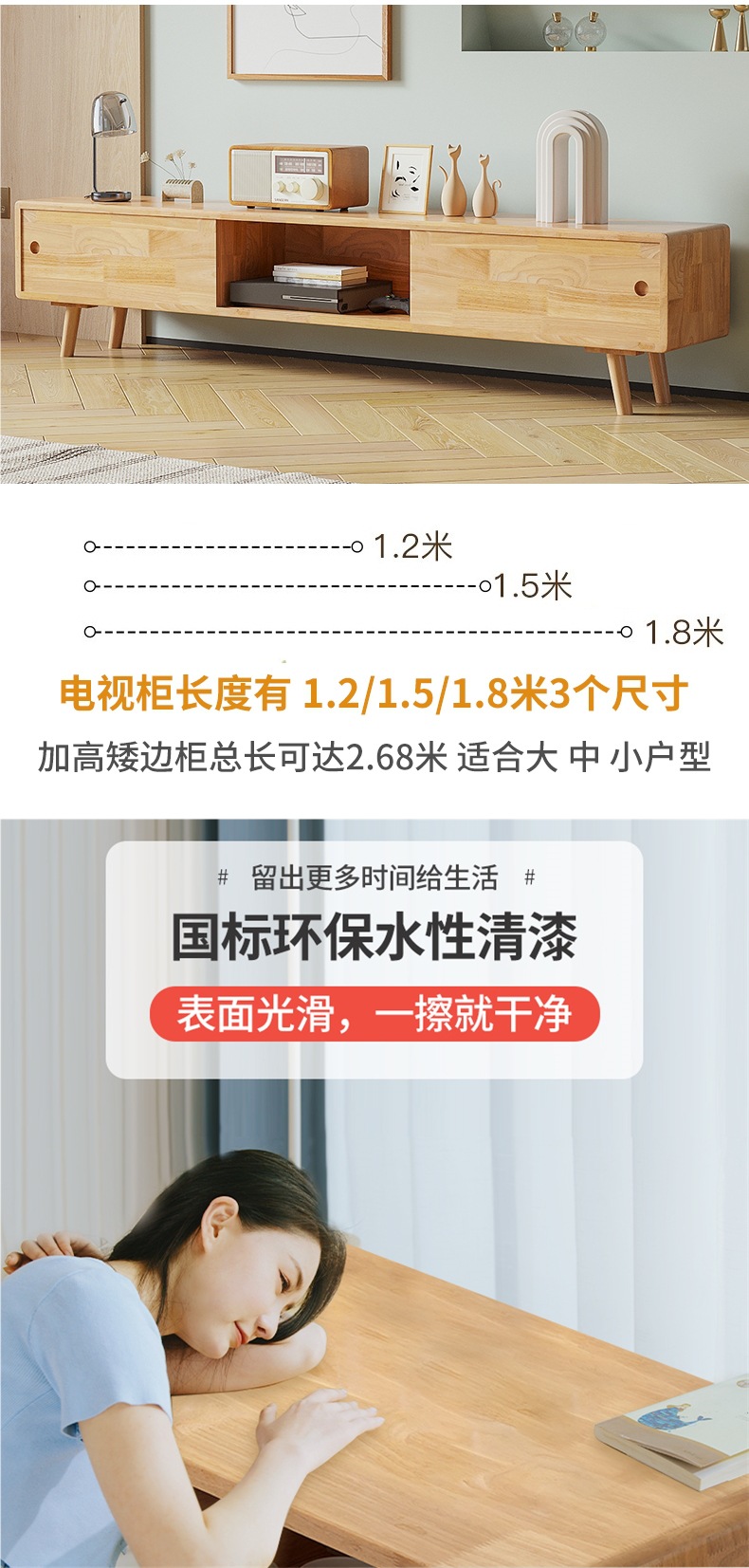 • 1.5m TV 캐비닛 로그 바니시