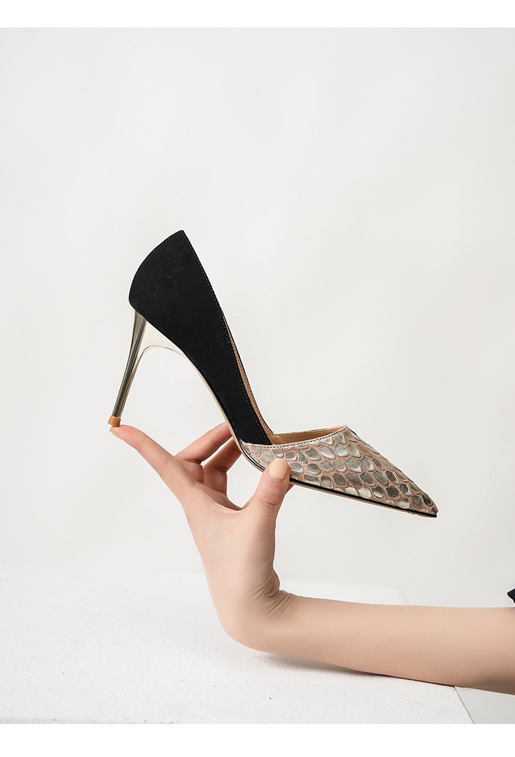 블랙 블루 틈새 하이힐 여성 가죽 봄 2022 새로운 기질 대형 여성 신발 41 ~ 43 한국 패션스토어 가기