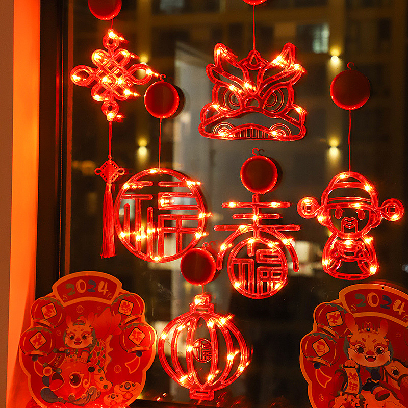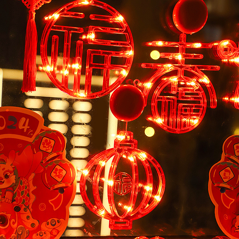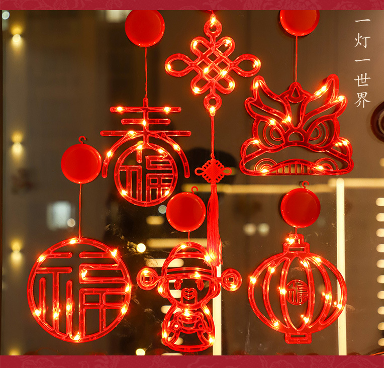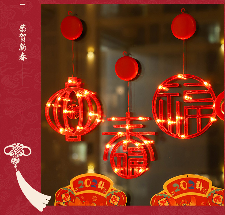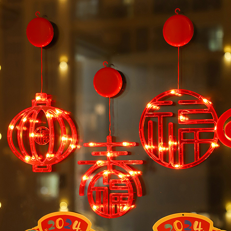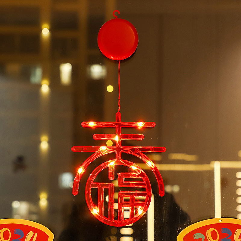 새 새해 봄 단어 흡입 접시 램프 발코니 창 펜던트 램프 LED 봄 축제 등불 축제 일 장식 조명