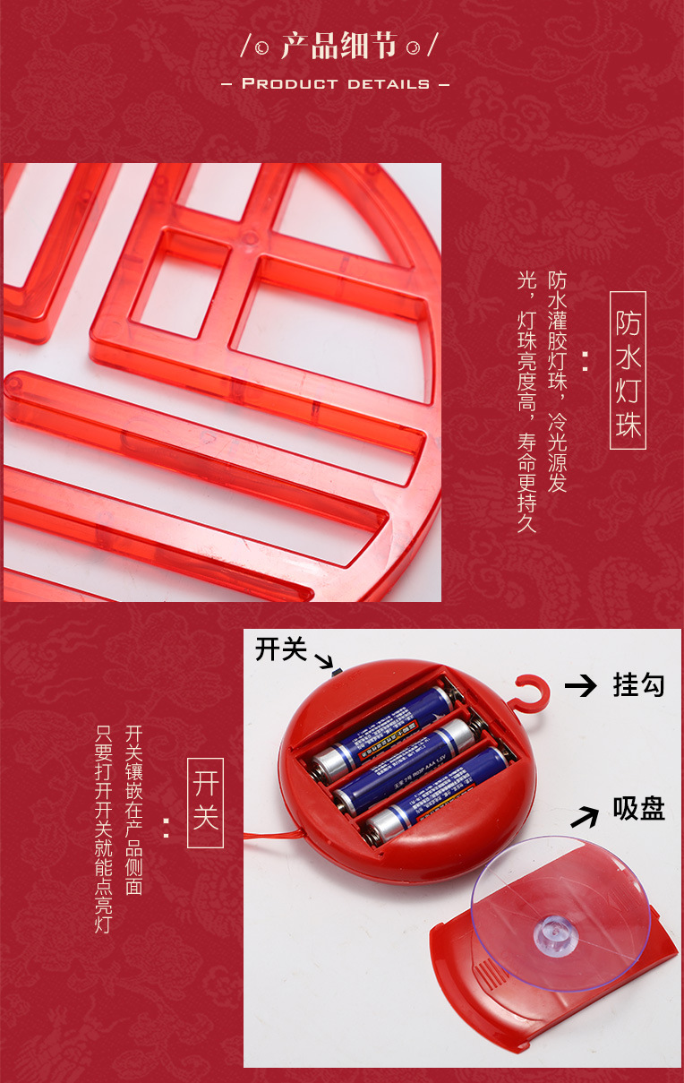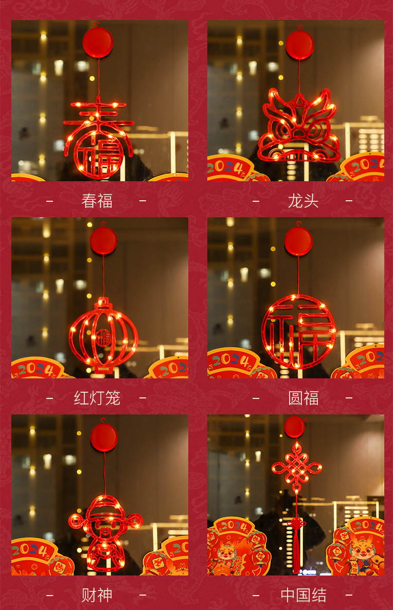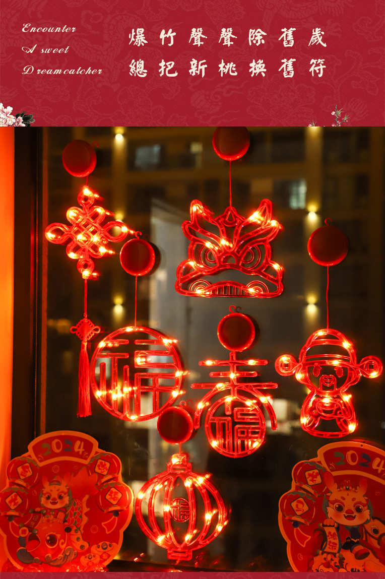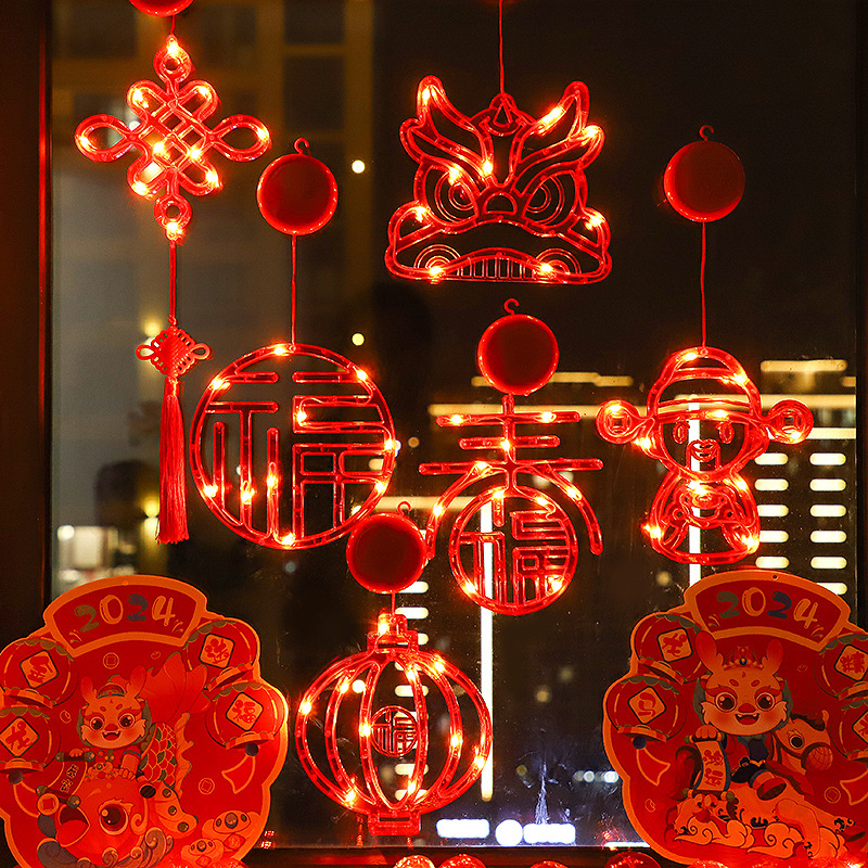 새 새해 봄 단어 흡입 접시 램프 발코니 창 펜던트 램프 LED 봄 축제 등불 축제 일 장식 조명