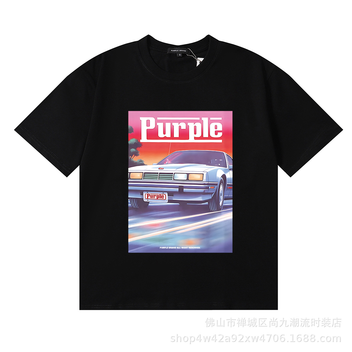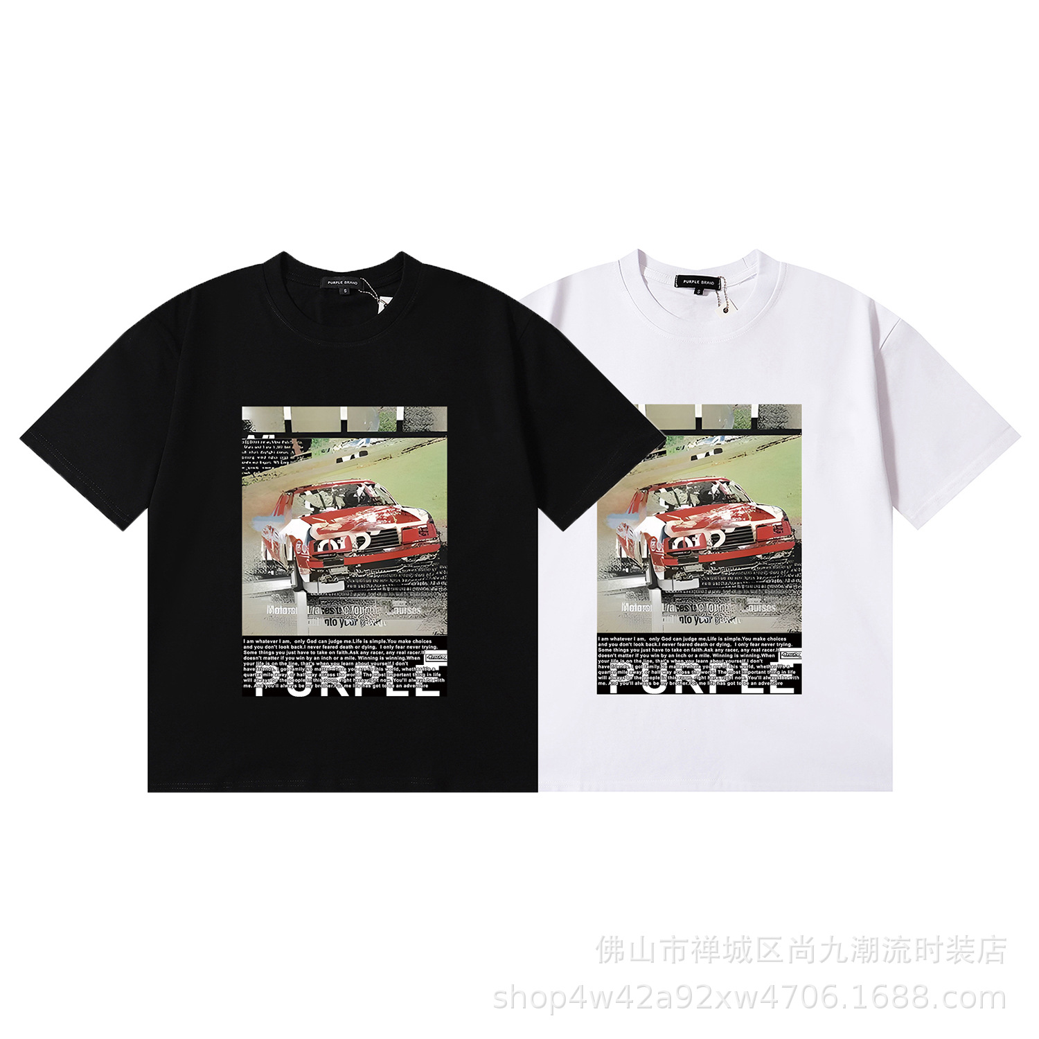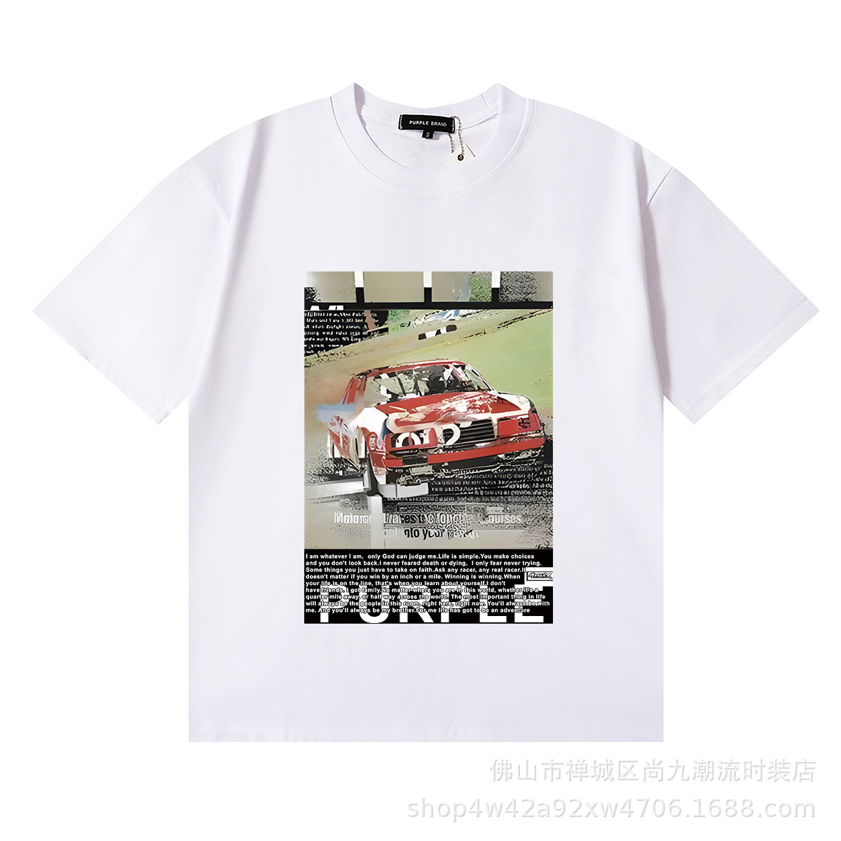 외국 무역 크로스보더 유럽 및 미국 트렌드 브랜드 퍼플드 레이싱 포스터 프린트 대형 사이즈 빅사이즈 트렌디 다용도 베이스 레이어스토어 가기