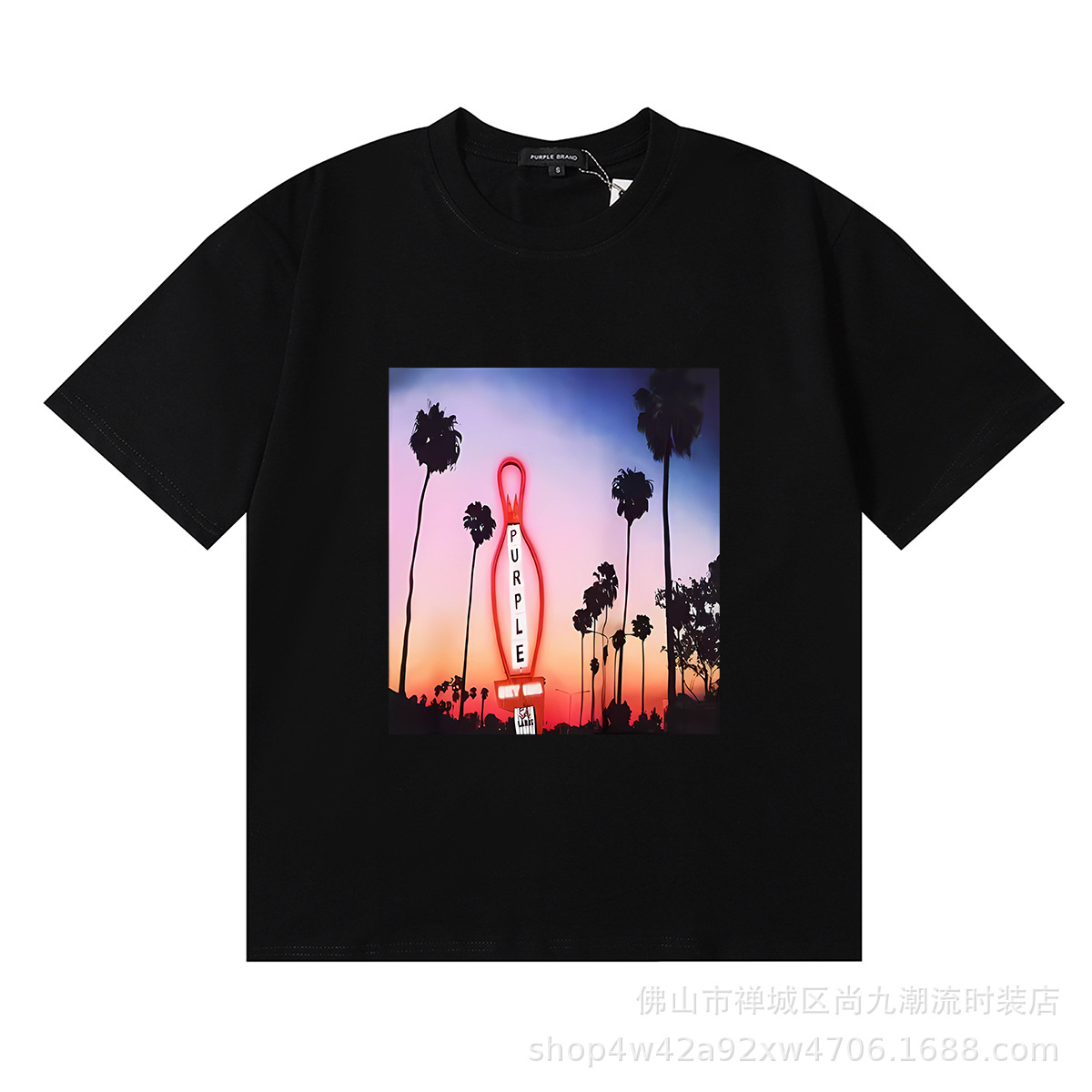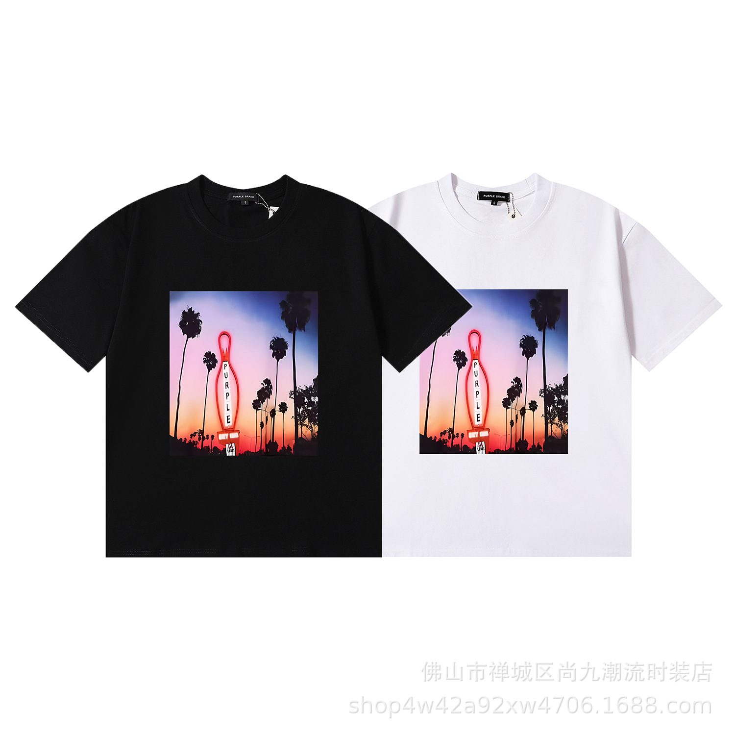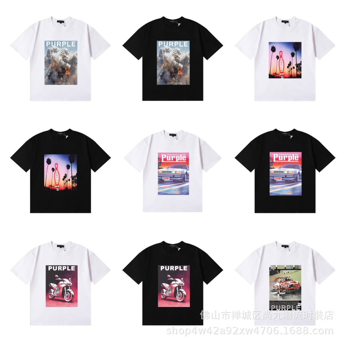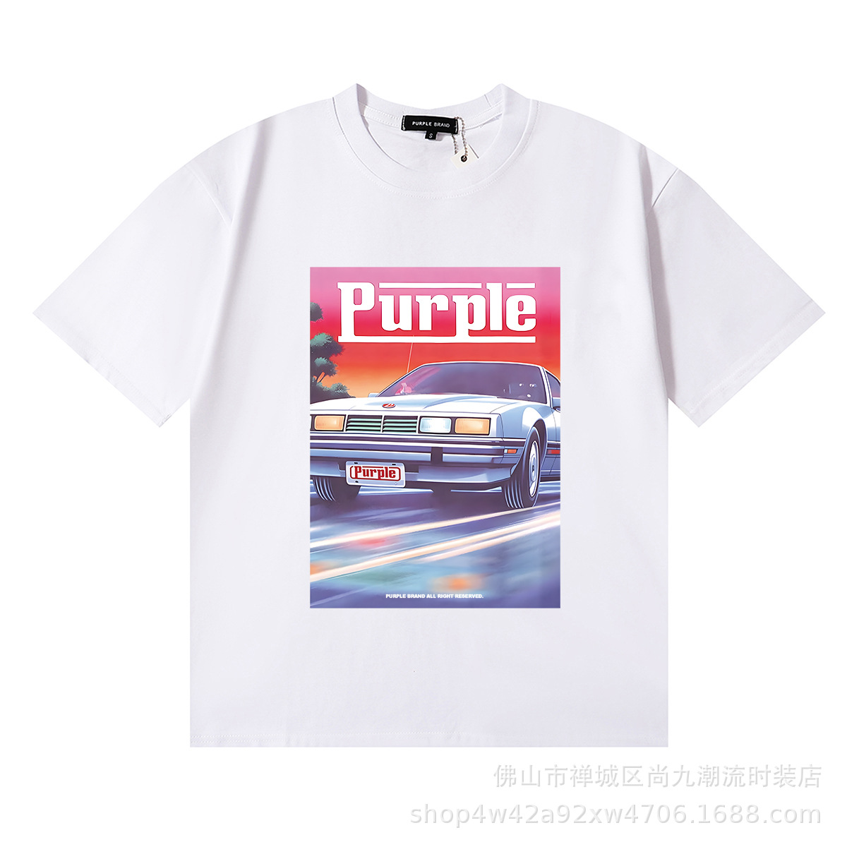 외국 무역 크로스보더 유럽 및 미국 트렌드 브랜드 퍼플드 레이싱 포스터 프린트 대형 사이즈 빅사이즈 트렌디 다용도 베이스 레이어스토어 가기